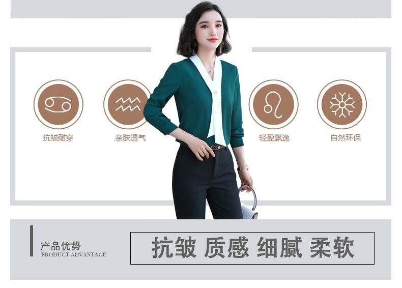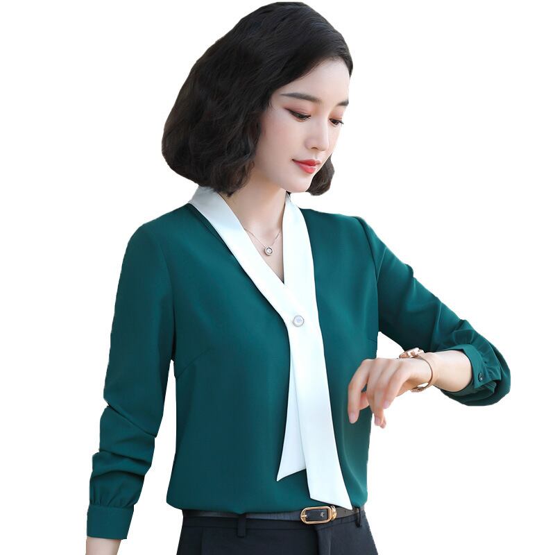 【新作】【送料無料】 シフォンシャツレディース2020秋冬新作蝶ネクタイノットコントラストカラーVネック長袖シャツバージョンのスリムトップ-アリババ ロング オータム 秋物 ウィンター 冬物 12b31410269953