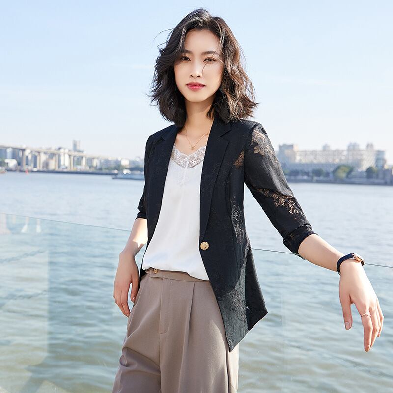 【新作】【送料無料】 スモールスーツジャケット女性シックタイド2020春ニュースタイルホロープリントスモールシンスーツジャケット-アリババ スプリング 春物 12b39335959875