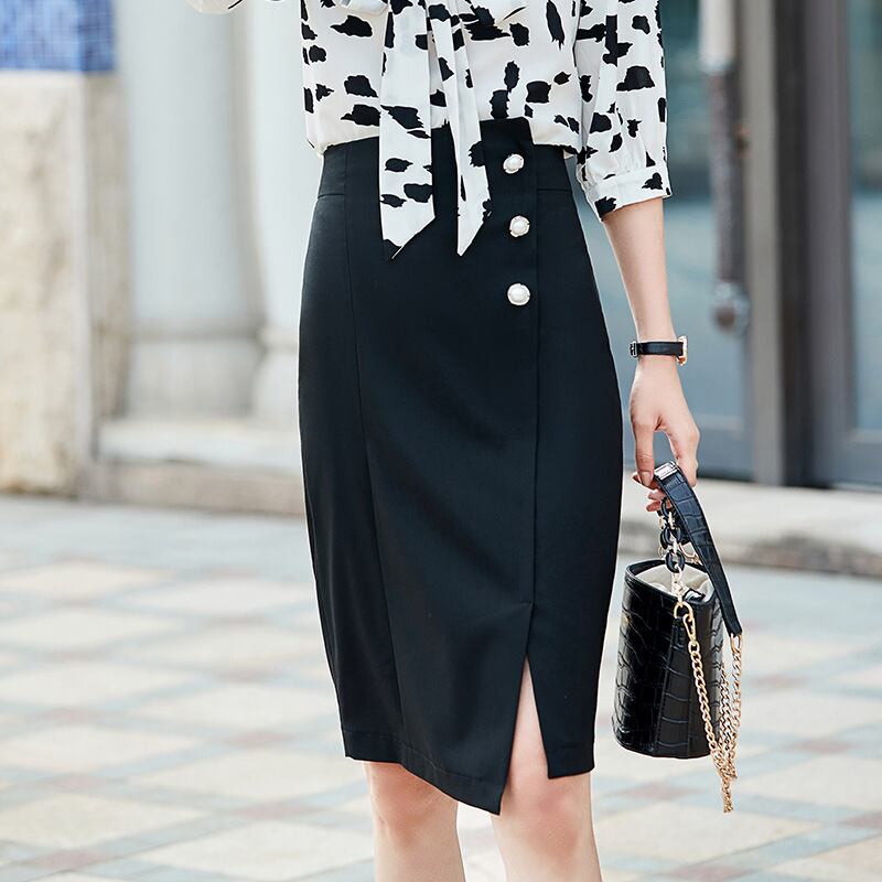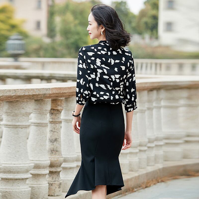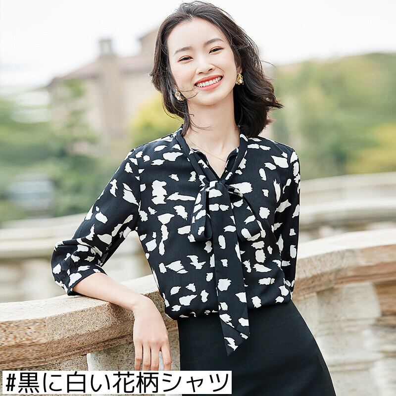 色:黒に白い花柄シャツ,白地に黒の花柄のシャツ,601ブラックタキシードスカート,6023ボタンスカート