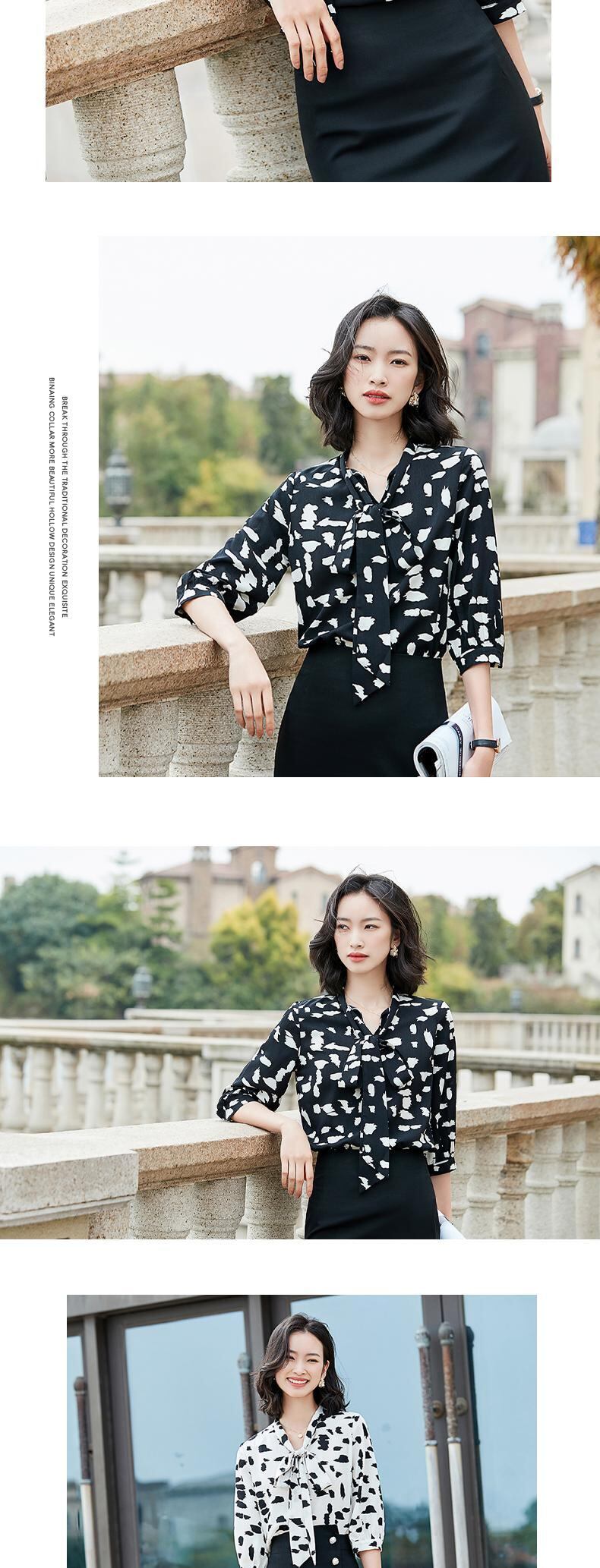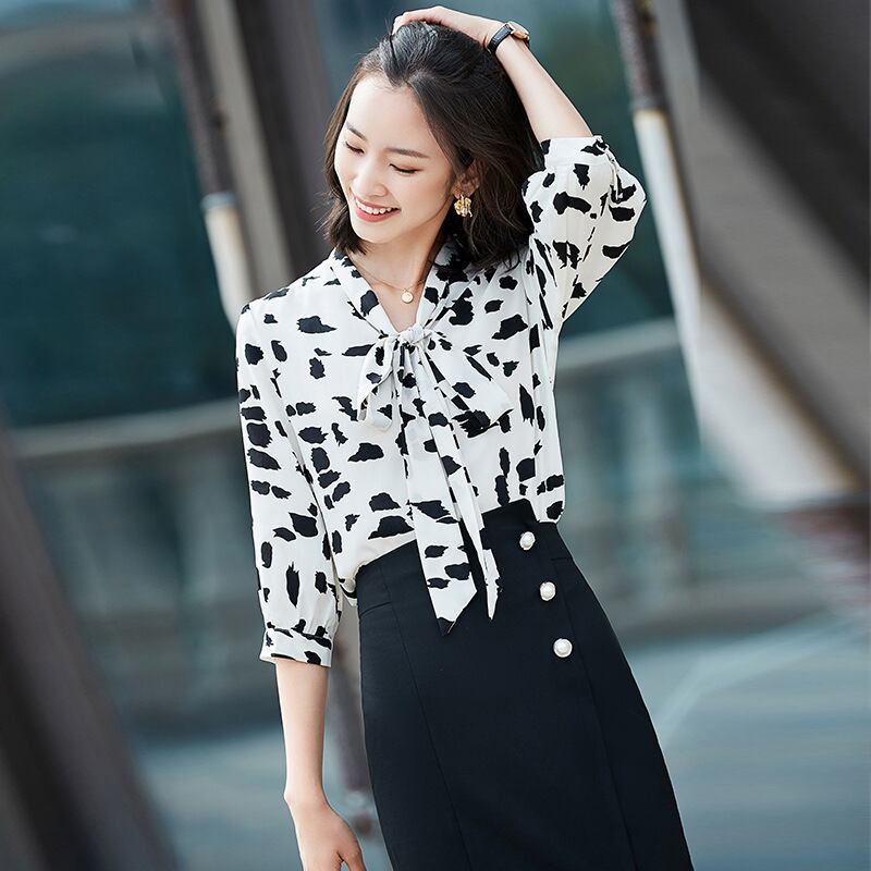 【新作】【送料無料】 2020シフォンシャツレディースファッション蝶ネクタイネクタイ七分袖ルーズウエスタンスタイルブラウスオールホワイトカラーシャツ-アリババ リボン 12b395966961647