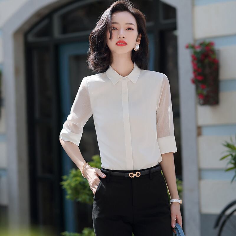 【新作】【送料無料】 2020年春夏新作レディースウエスタンスタイル5点スリーブシフォンシングルウェアプロホワイトカラーボトミングホワイトシャツトップス-アリババ スプリング 春物 サマー 夏物 12b394769293489