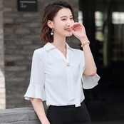 【新作】【送料無料】 2020年春の新しい女性のプロのシャツ女性のミッドスリーブブラウス新しいファッショントップス気質通勤者OL-アリババ スプリング 春物 12b321374413512