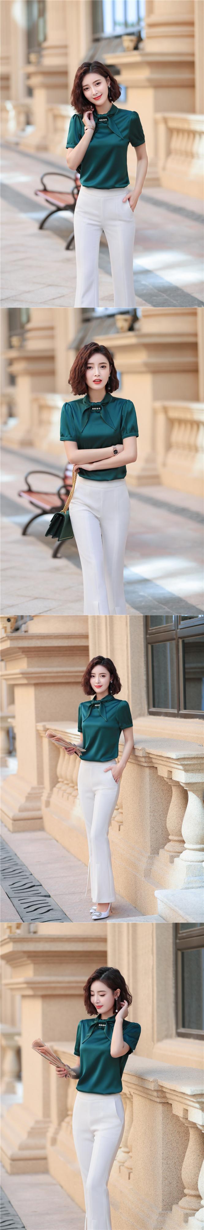 【新作】【送料無料】 HongHuitingハイエンドファブリックシャツレディースハーフスリーブ2020年春新しいレディースファッションラウンドネックシフォンシャツトップ-アリババ スプリング 春物 Oネック 12b395043902574