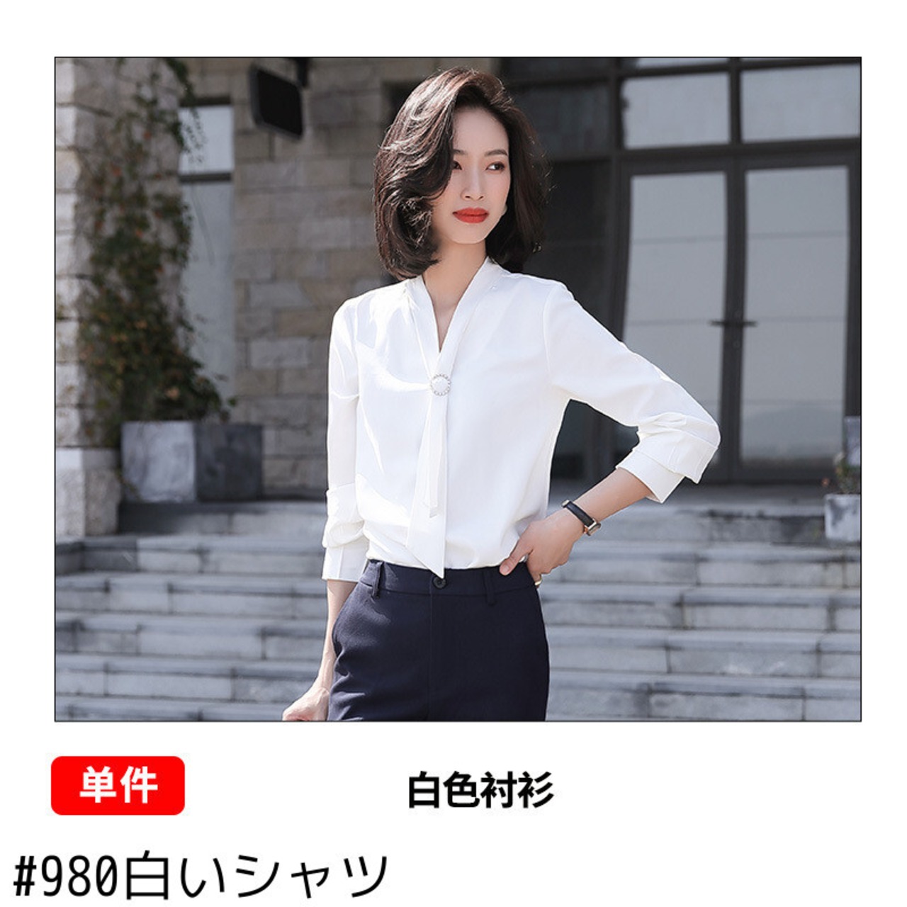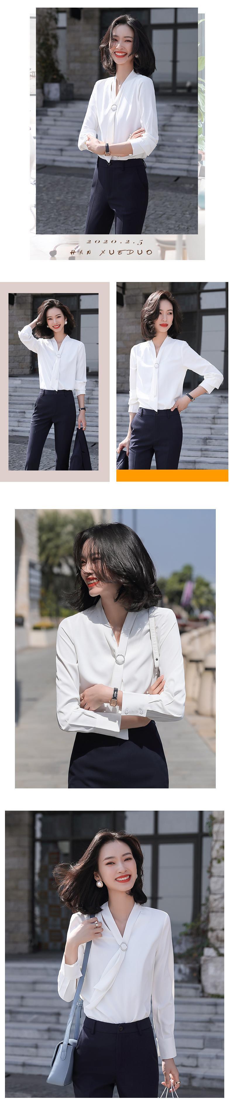【新作】【送料無料】 ホワイトシャツウィメンズ2020初春新作長袖トップスレディースファッションウエスタンVネックシフォンプロシャツウィメンズ-アリババ ロング スプリング 春物 12b322155767534