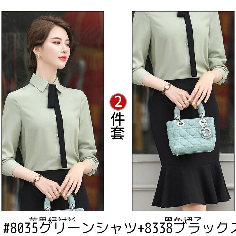 色:8035白いシャツ+8338黒いズボン,8035グリーンシャツ+8338ブラックスカート,8035白いシャツ,8035グリーンシャツ