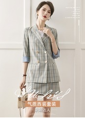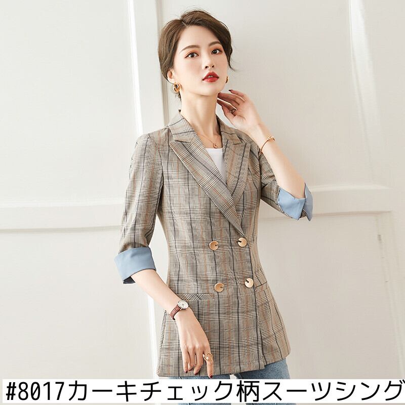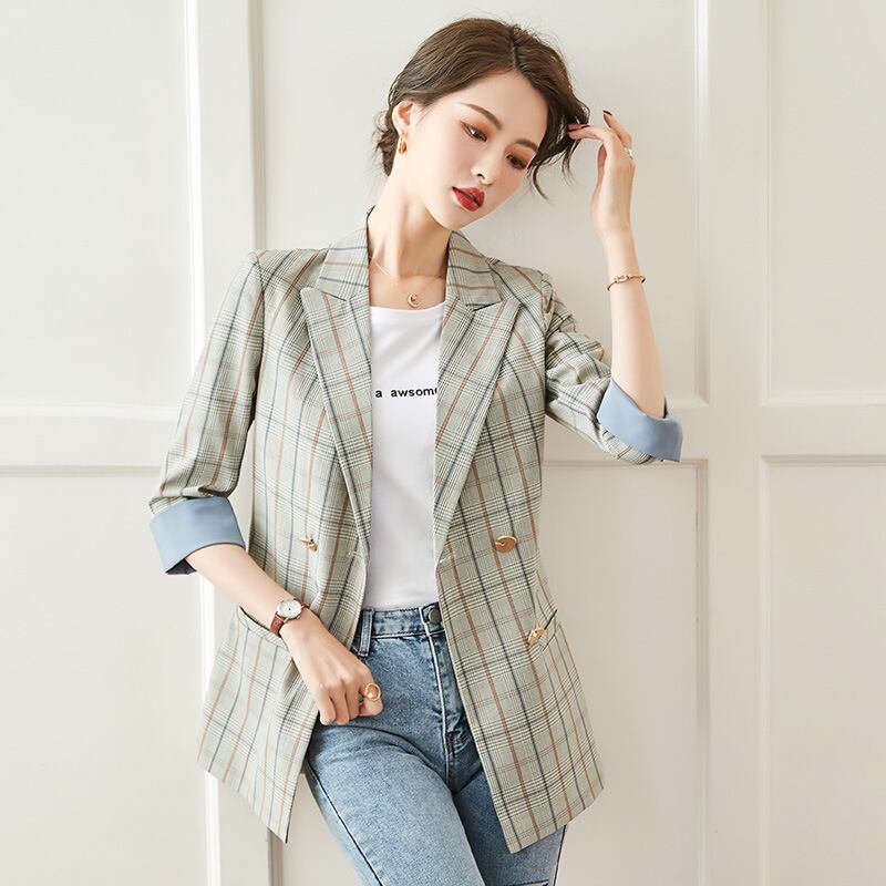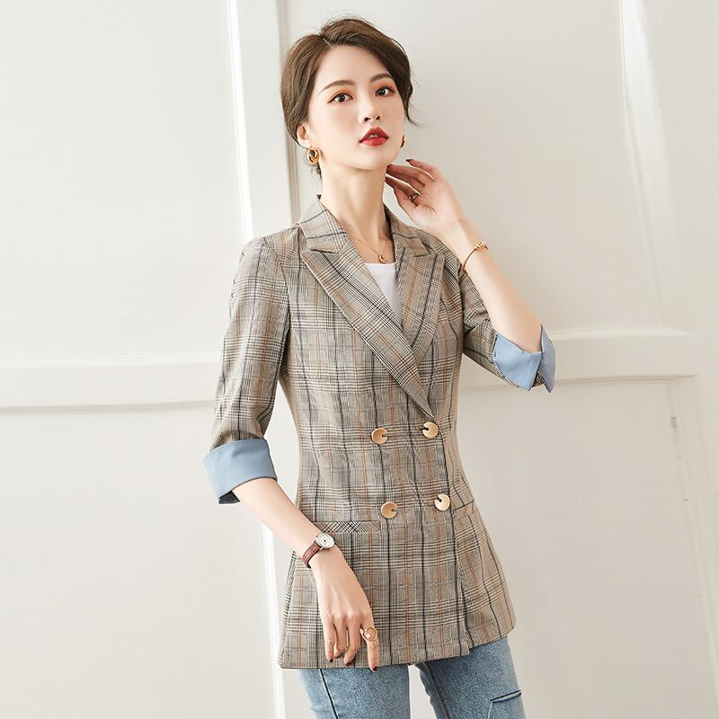【新作】【送料無料】 2020年春夏の新しい女性の3/4スリーブチェックレトロカラー千鳥格子プロカジュアルホワイトカラースモールスーツジャケット-アリババ スプリング 春物 サマー 夏物 12b390566280046