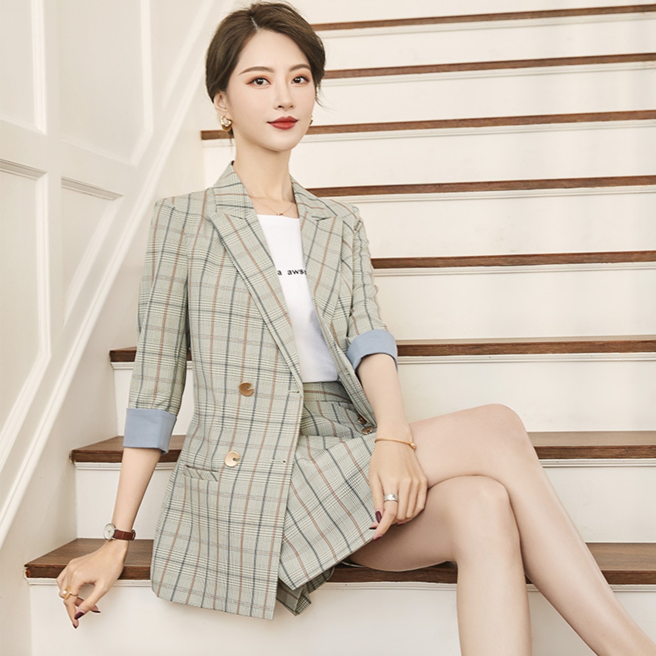 色:8017カーキチェック柄スーツシングルピース,8017ライトフルーツグリーンチェックスーツワンピース,8017カーキチェック柄+ショートスカート,8017ライトフルーツグリーングリッド+ショートスカート