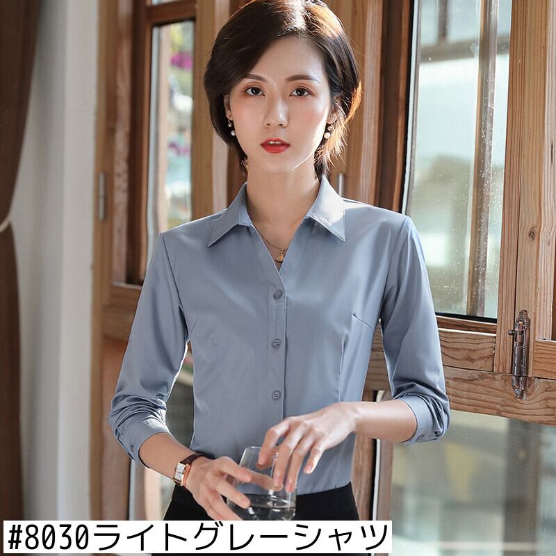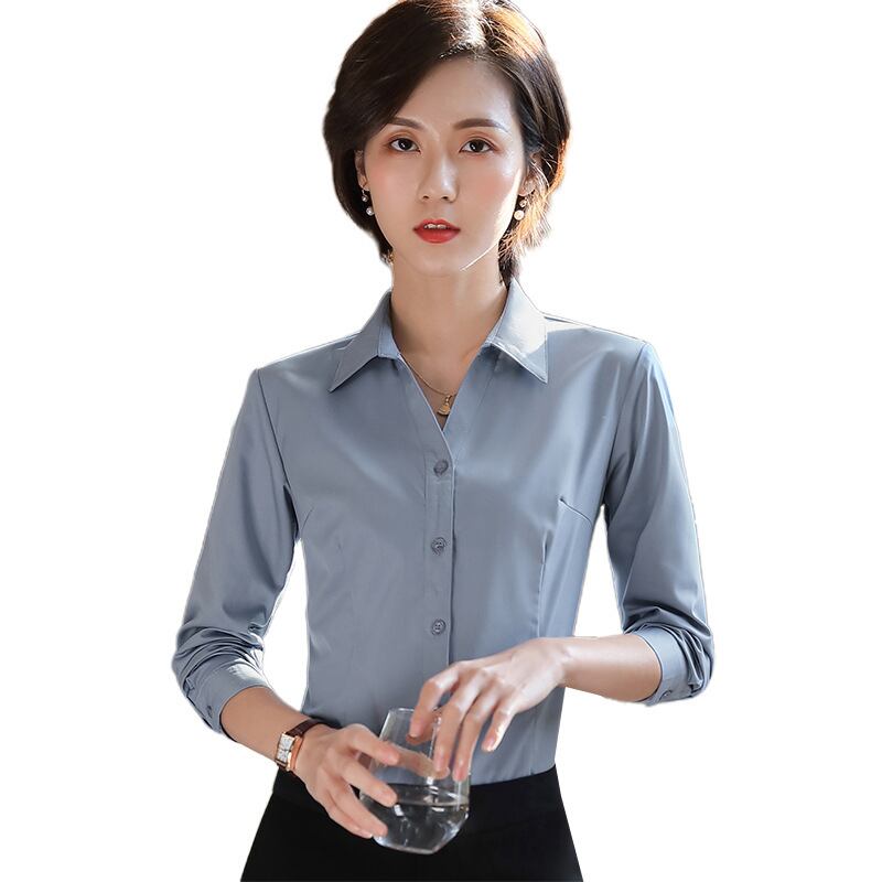 【新作】【送料無料】 ビジネスウェアグレー長袖シャツ2020春夏新作レディースマルウェアスリムスリムシングルブレストビジネスOLシャツ-アリババ ロング スプリング 春物 サマー 夏物 12b396228444956