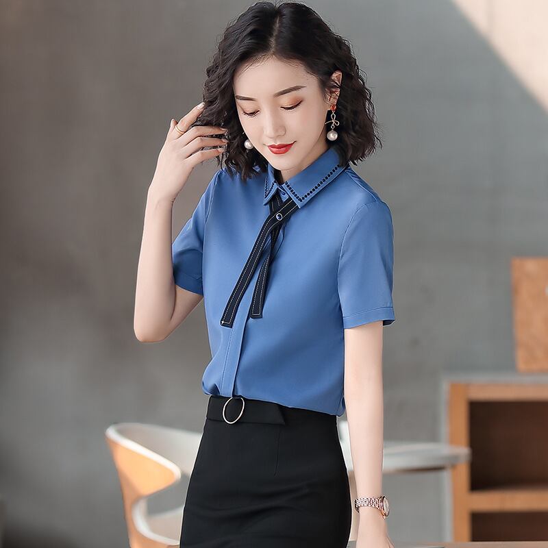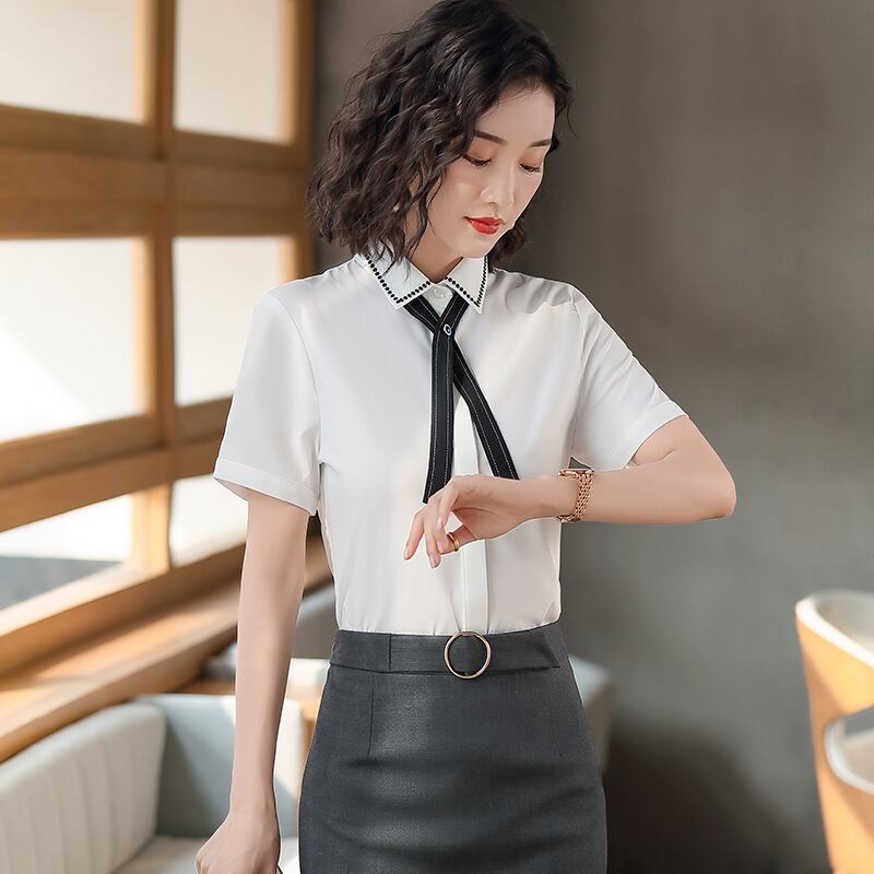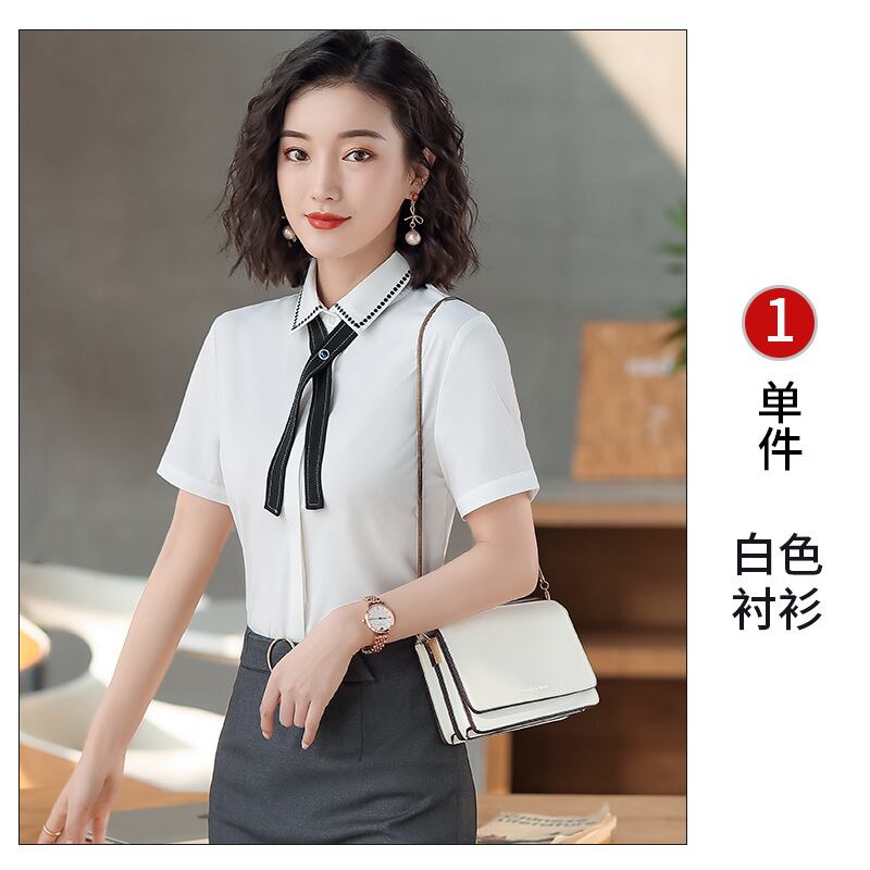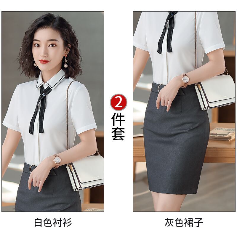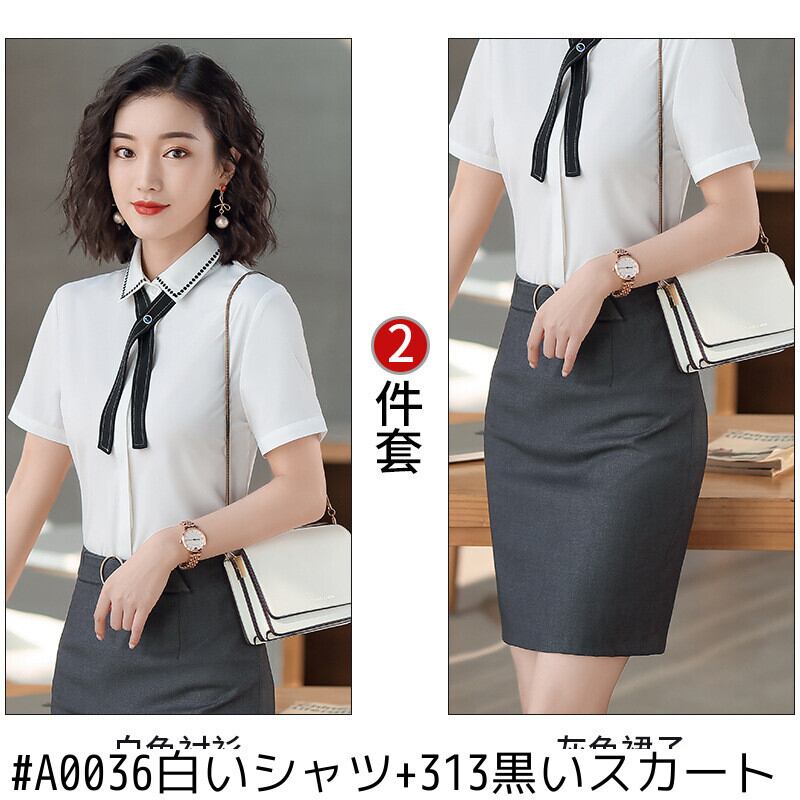 色:A0036白いシャツ,A0036青いシャツ,A0036白いシャツ+313黒いスカート,A0036青いシャツ+313黒いスカート