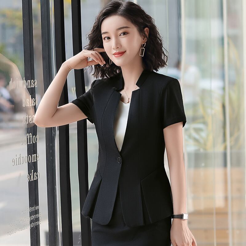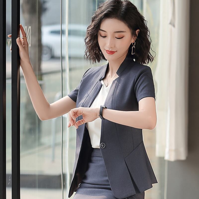 【新作】【送料無料】 ビューティーサロン半袖スーツとエレガントなスカートスーツ女性2020年春夏の新しいハイウエストプロフェッショナルツーピーススーツ-アリババ スプリング 春物 サマー 夏物 12b320644526486