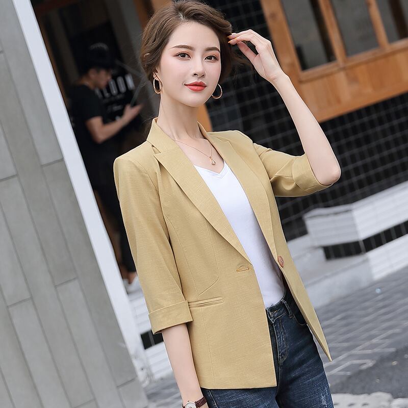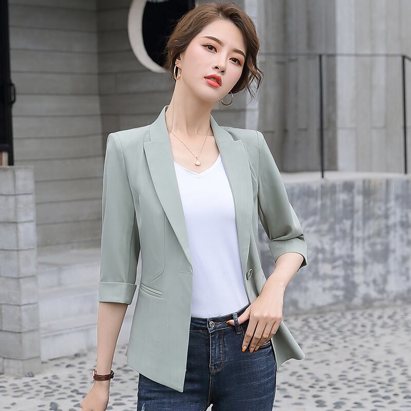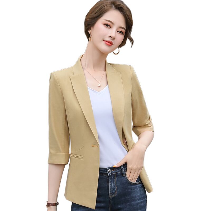 【新作】【送料無料】 Xiaoxiangfengエレガントスーツジャケット2020春と夏の新しい女性のワンボタンスリムスーツプロフェッショナルミドルスリーブトップ-アリババ スプリング 春物 サマー 夏物 12b329698935649