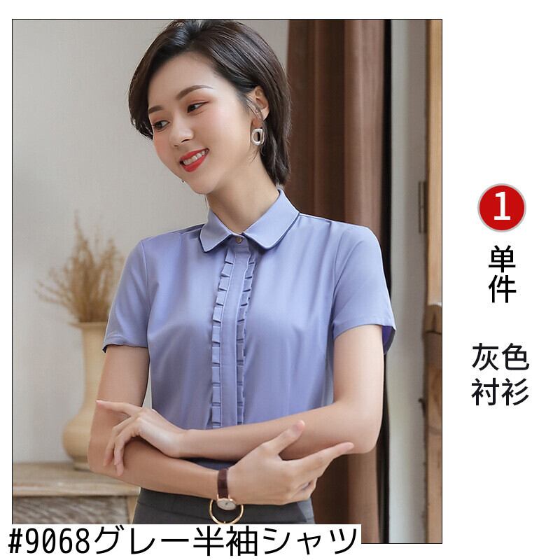 色:9068白半袖シャツ,9068グレー半袖シャツ,9068アプリコット半袖シャツ,9068アプリコット半袖シャツ+313ブラックショートスカート,9068グレー半袖シャツ+313グレーショートスカート,9068ホワイト半袖シャツ+313グレーショートスカート