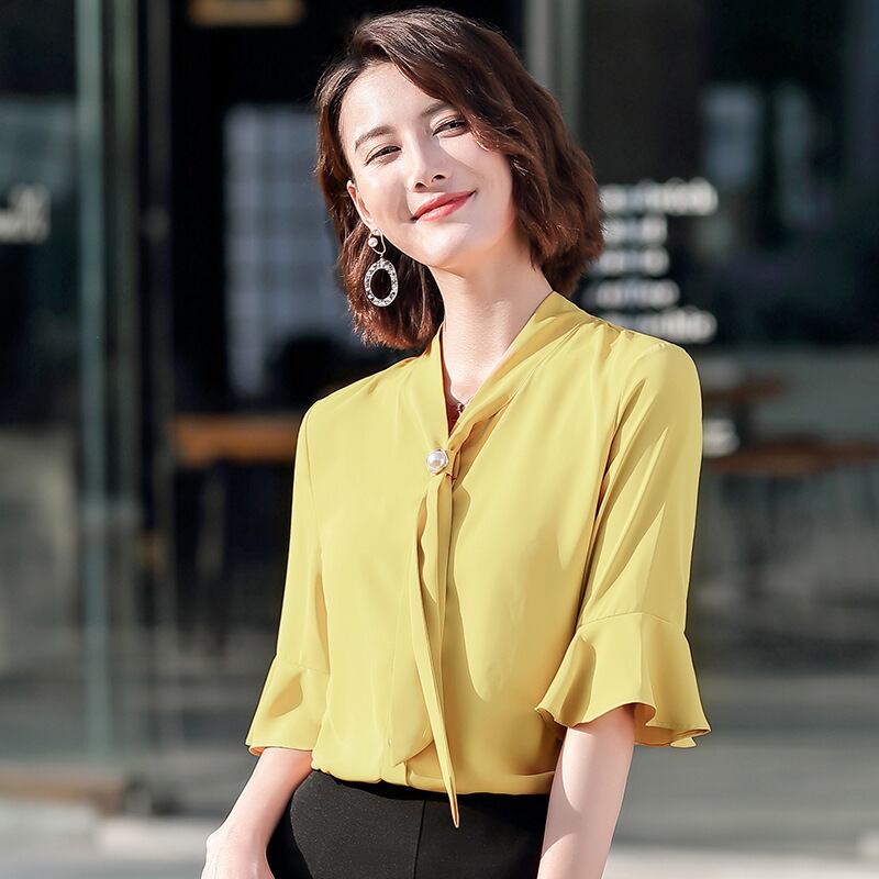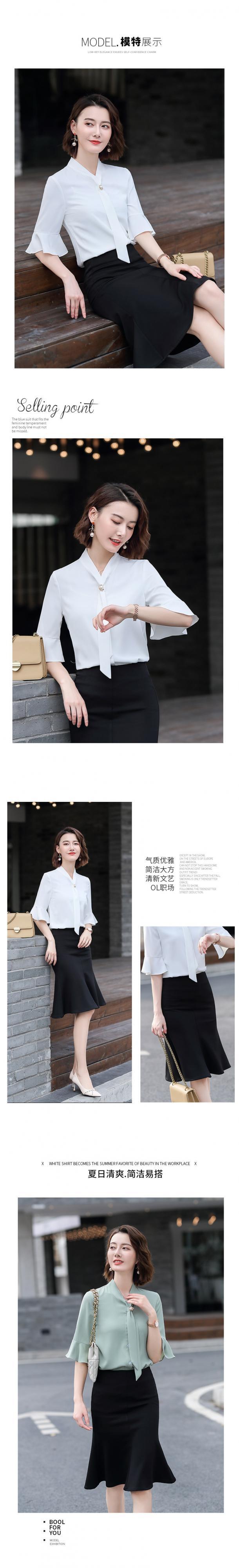 【新作】【送料無料】 ファイブポイントホーンミッドスリーブ気質シフォンシャツレディースプロホワイトカラースリミングブラウス2020春夏新婦人服-アリババ スプリング 春物 サマー 夏物 12b378057935925