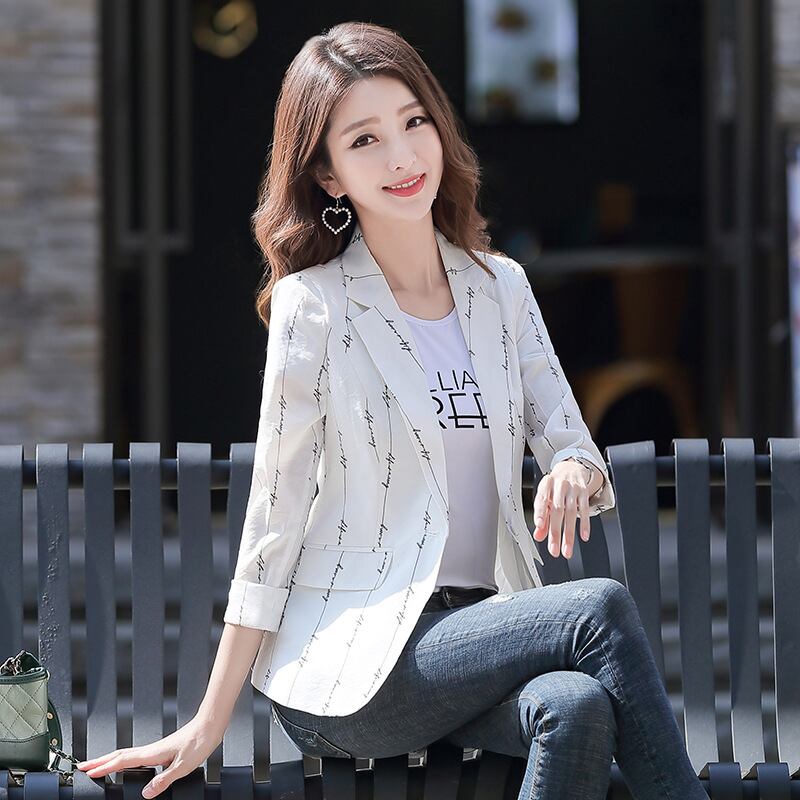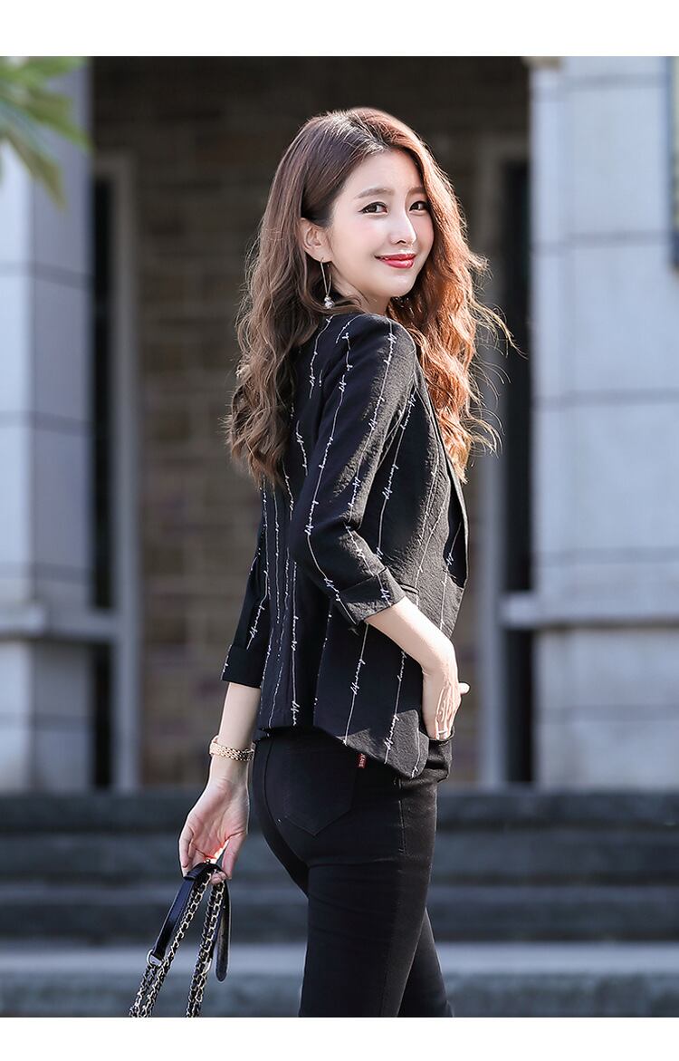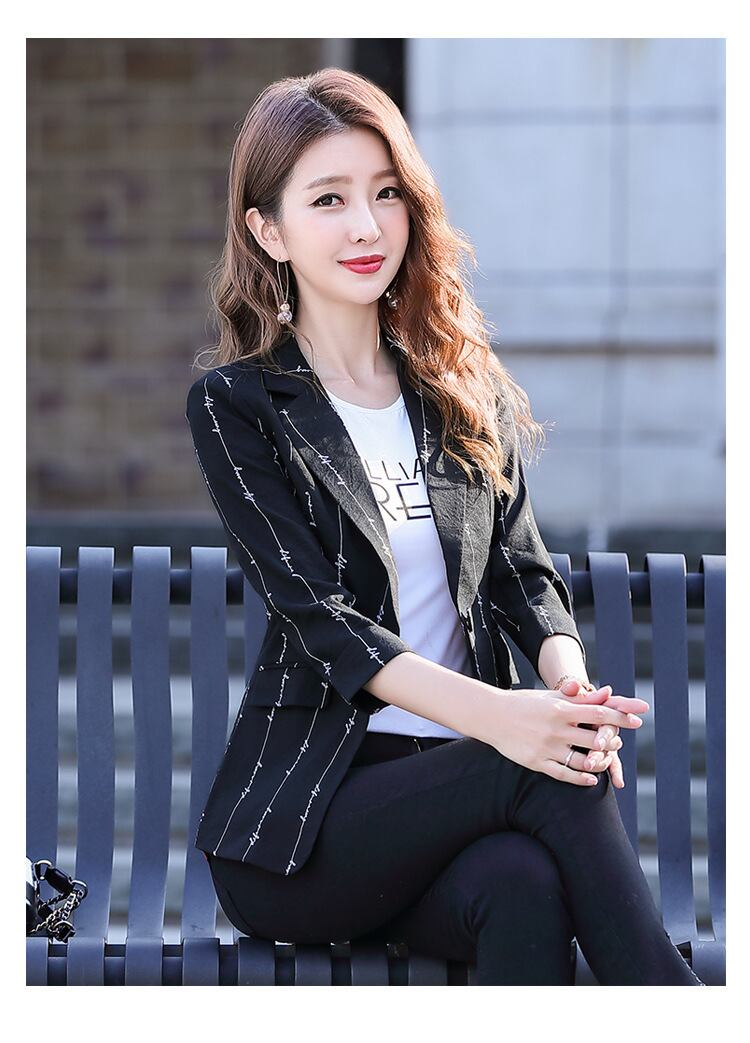 【新作】【送料無料】 ブラックストライプ5点スリーブジャケットスーツ2020春夏新作レディーススリム気質スリムフィットスーツ-アリババ スプリング 春物 サマー 夏物 12b340371718719