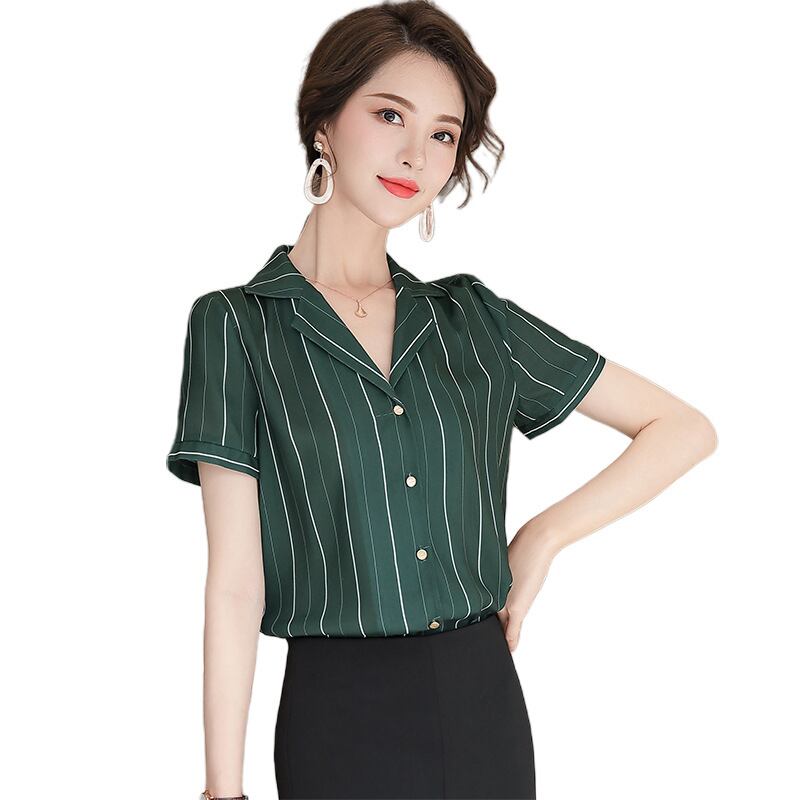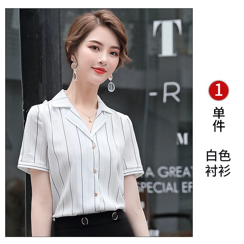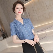 【新作】【送料無料】 ブルーストライプシフォンスーツカラー気質シャツ2020春夏新作カジュアルインタビューウェアプロスリムシャツ-アリババ スプリング 春物 サマー 夏物 12b346161507503