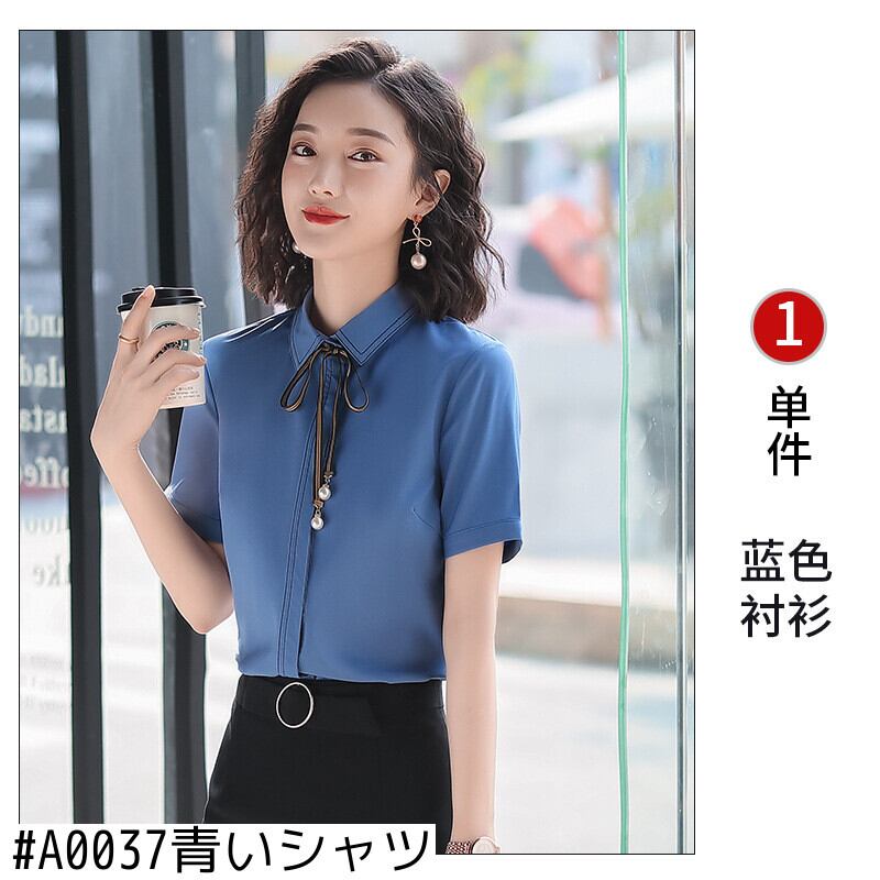 色:A0037白いシャツ,A0037青いシャツ,A0037白いシャツ+313グレーのスカート,A0037青いシャツ+313黒いスカート