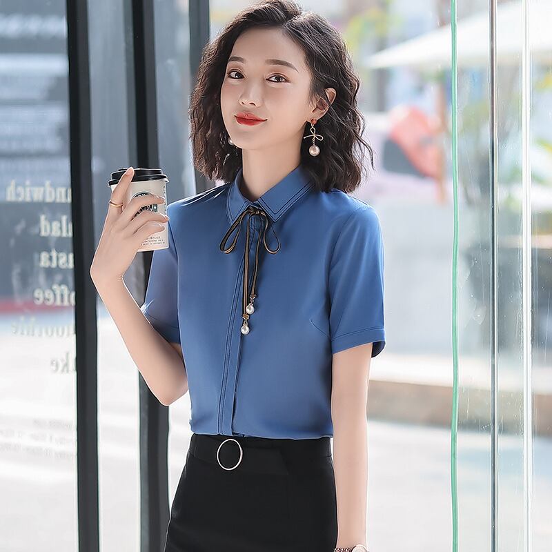 【新作】【送料無料】 社長インタビュー作業服プロホワイトカラービジネスシャツ2020春夏新作レディースマルウェアスリム半袖シャツ-アリババ スプリング 春物 サマー 夏物 12b375849031761