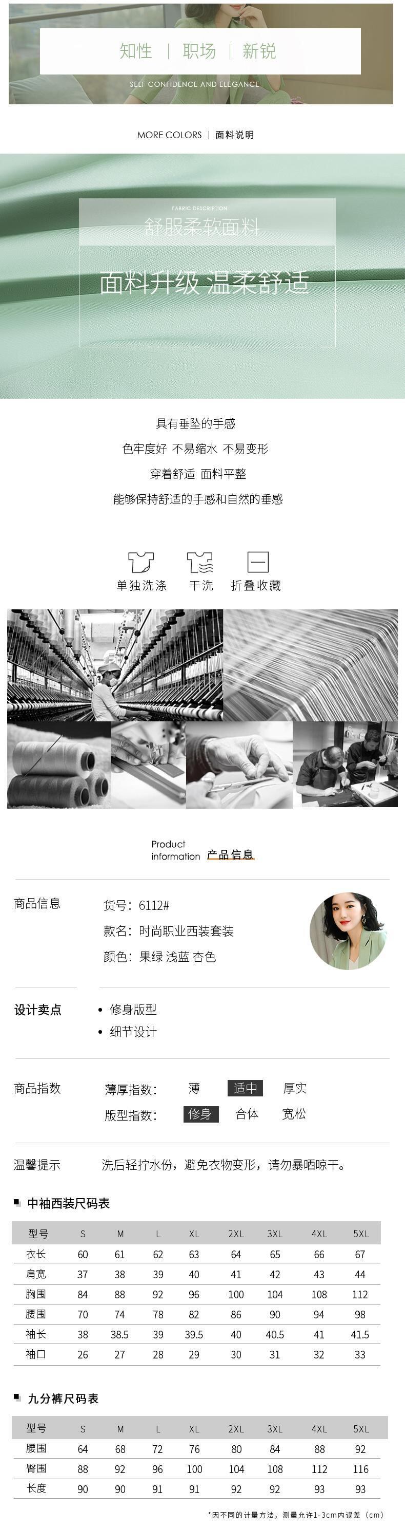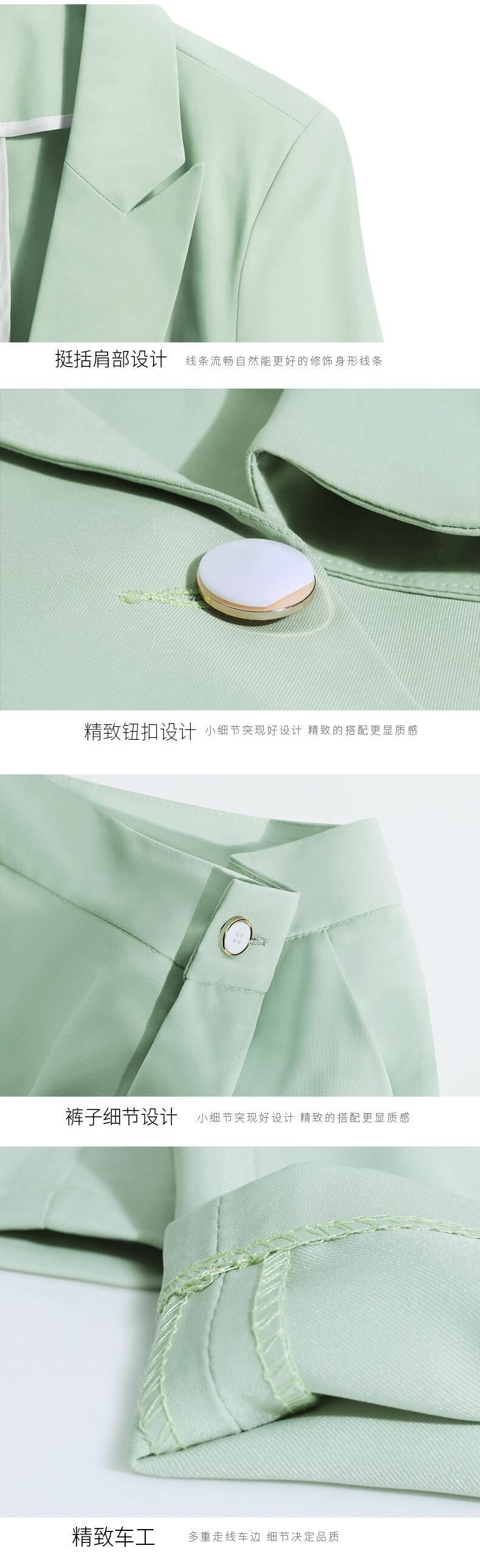 色:ワンピースフルーツグリーンスーツ,ワンピースライトブルースーツ,ワンピースベージュスーツ,フルーツグリーンスーツ+フルーツグリーンクロップドパンツ,ライトブルーのスーツ+ライトブルーのクロップドパンツ,アプリコットスーツ+アプリコットクロップドパンツ
