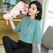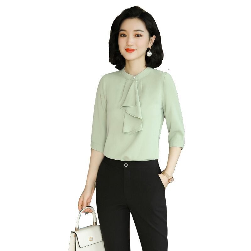 【新作】【送料無料】 銀行のプロのオーバーオール2020春と夏の新しい婦人服スリムビジネスウエスタン気質ホワイトカラーシフォンプルオーバーシャツ-アリババ スプリング 春物 サマー 夏物 12b380275905418
