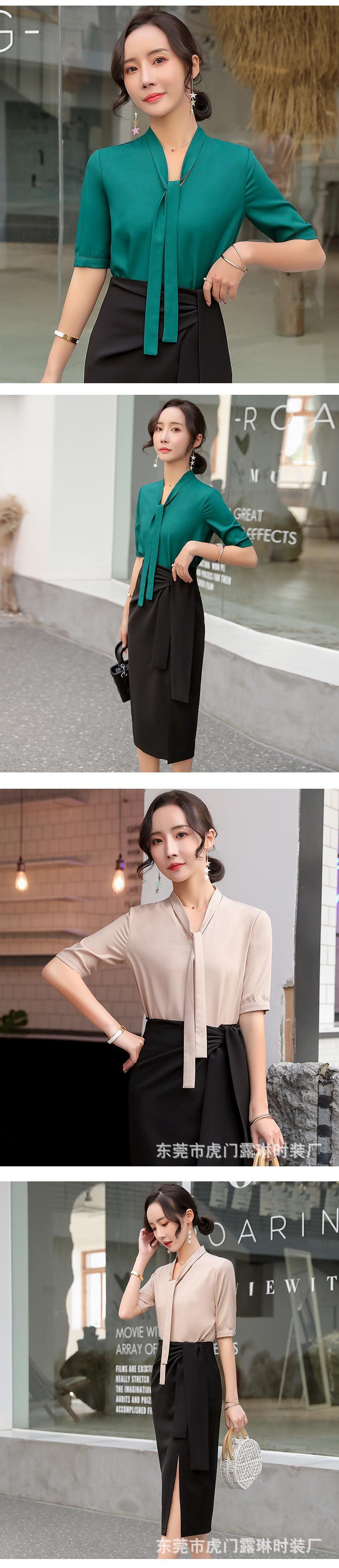 【新作】【送料無料】 緑の5点袖スタンドアップカラーシフォンシャツプロのホワイトカラーインタビューオーバーオール2020春と夏の新しい婦人服-アリババ スプリング 春物 サマー 夏物 グリーン 12b367821959316