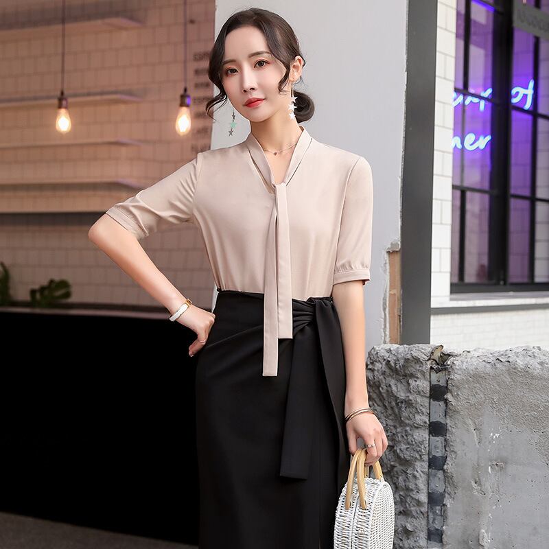 色:5178グリーンシフォンシャツ,5178白いシフォンシャツ,5178アプリコットシフォンシャツ,0208黒のスカート