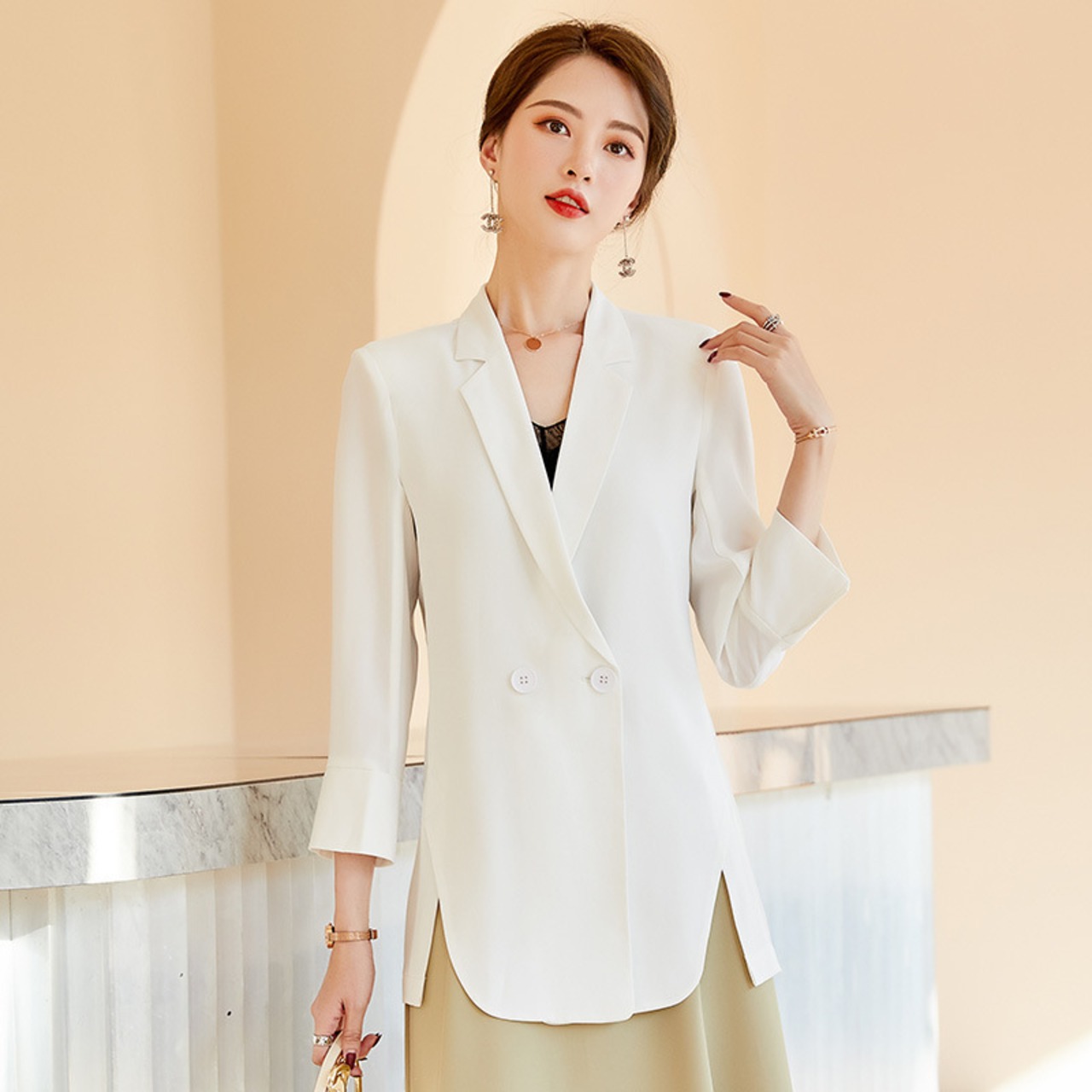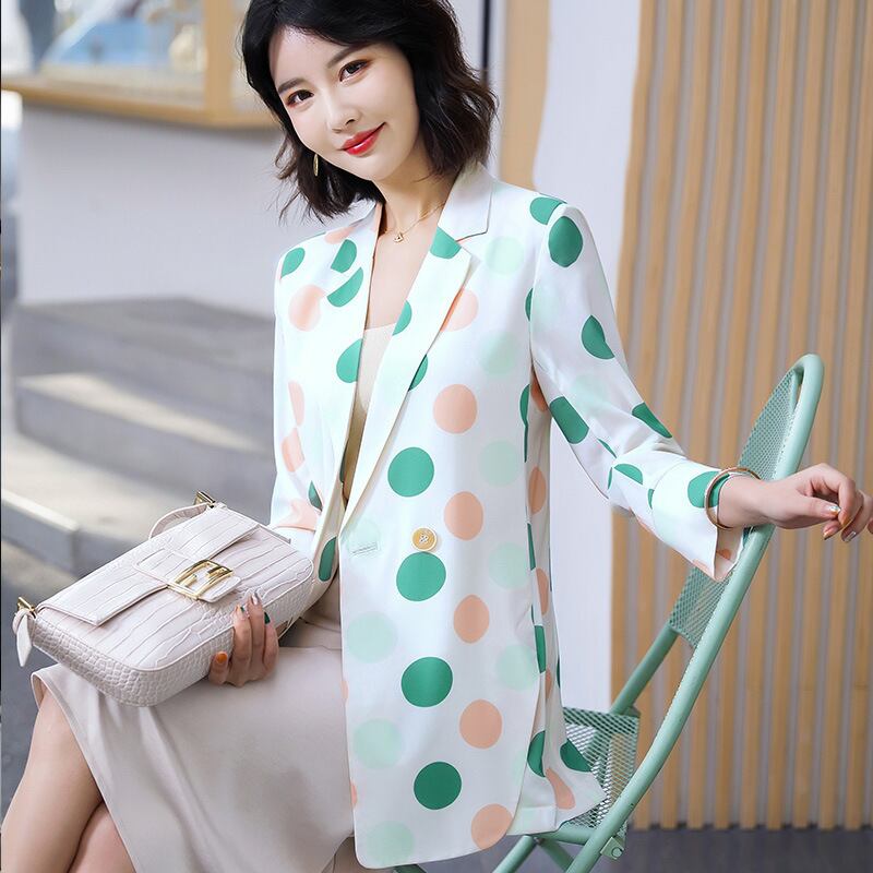 【新作】【送料無料】 水玉プリントロングシフォンシンレディーススモールスーツジャケット2020春夏新作レディース日焼け止めスモールスーツ-アリババ スプリング 春物 サマー 夏物 12b333556346156
