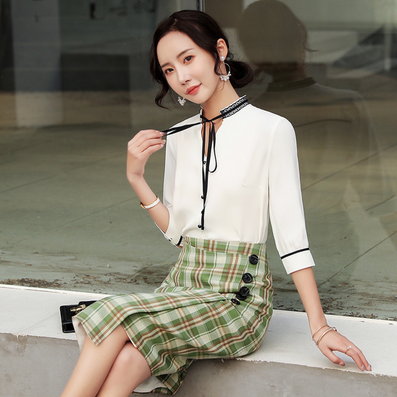 【新作】【送料無料】 セレブリティ気質小さな香りのよい風シフォン七分袖黄色のシャツ2020春と夏の新しい女性のプルオーバー面接トップ-アリババ スプリング 春物 サマー 夏物 12b336631270130