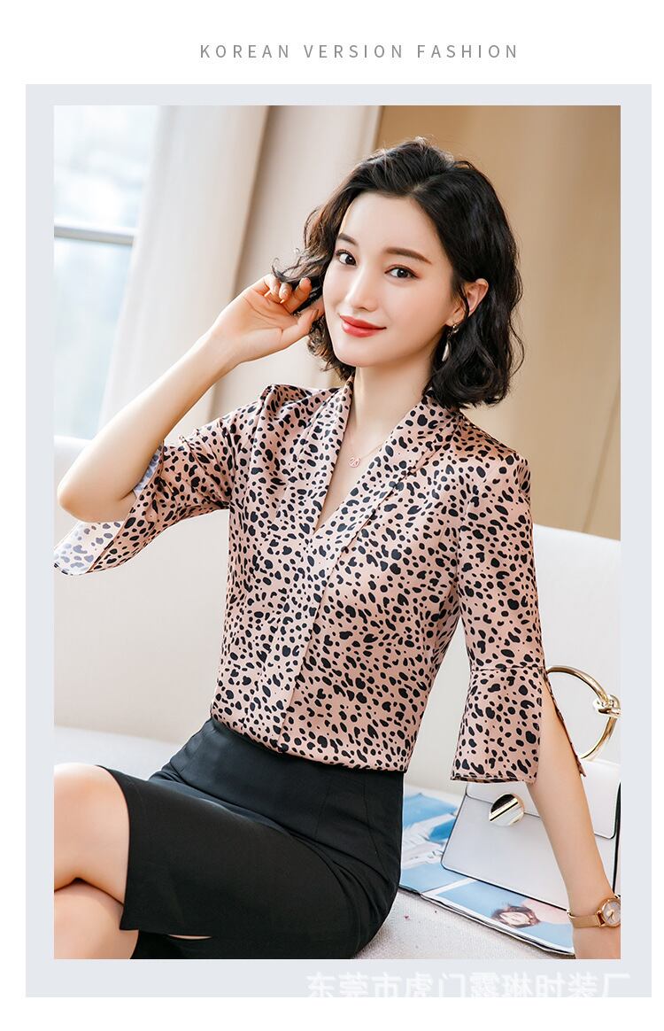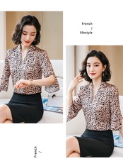 【新作】【送料無料】 ヒョウ柄シフォンVネックプルオーバープリントシャツ2020春夏新作女性気質プロの女神ホワイトカラーシャツ-アリババ スプリング 春物 サマー 夏物 12b316572973985