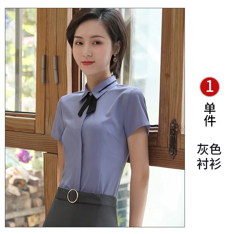 【新作】【送料無料】 グレーの半袖シャツ2020年春夏新作レディースラペルシングルブレストブラウスビジネスキャリアインタビューオーバーオール-アリババ スプリング 春物 サマー 夏物 12b33105739902