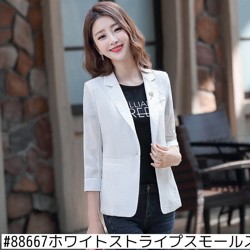 【新作】【送料無料】 ホワイトストライプスーツジャケットXiaoxiangfengネットレッド2020春と夏の新しい女性のマルウェアは薄いビジネスプロフェッショナルスーツに見えます-アリババ スプリング 春物 サマー 夏物 12b326685602150