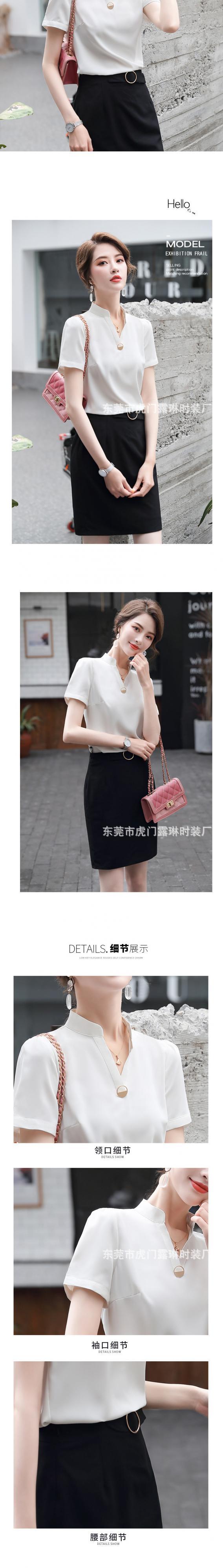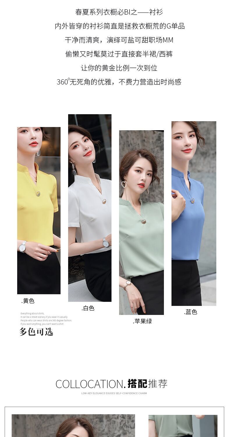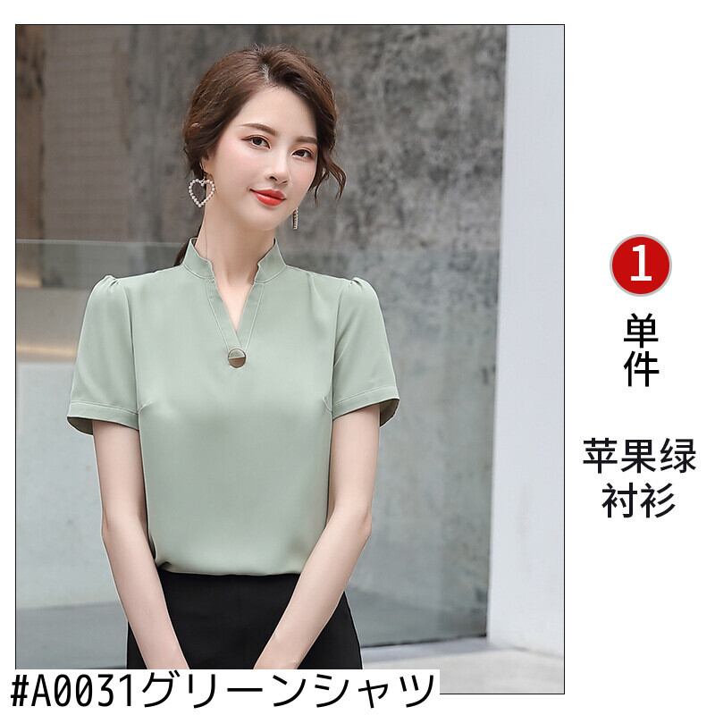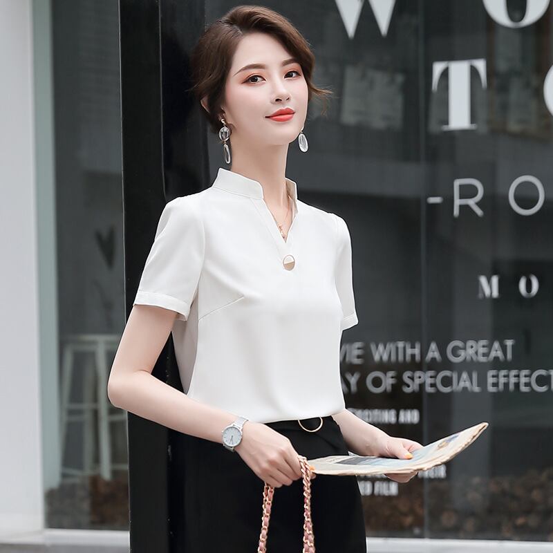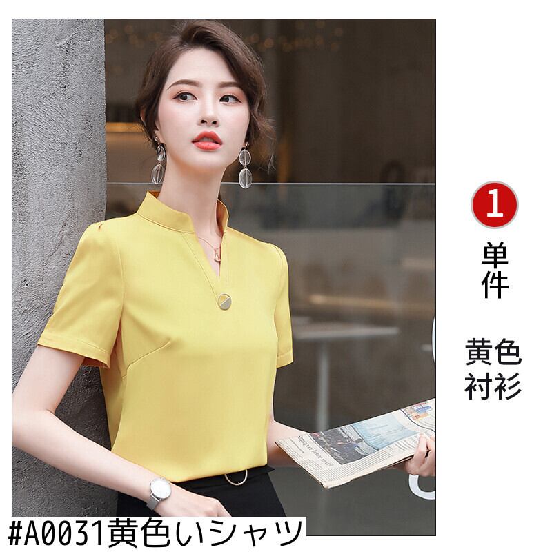 【新作】【送料無料】 半袖シフォンVネックeign気質シャツ2020春と夏の新しい女性のスリムな無地のプロのオーバーオールトップ-アリババ スプリング 春物 サマー 夏物 ソリッドカラー 12b366151219621