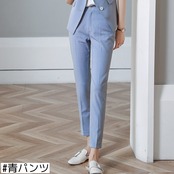 【新作】【送料無料】 英国スタイルのプロのワークパンツのストライプの小さなズボンの女性バージョンは、オールマッチストレート9ポイントテーパードハイウエストスリム気質-アリババ ハイウェスト レッド 12b39752139535