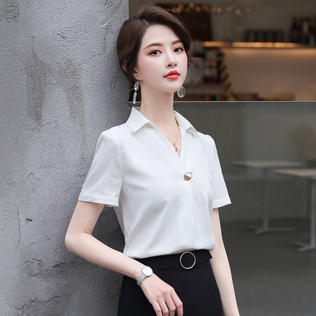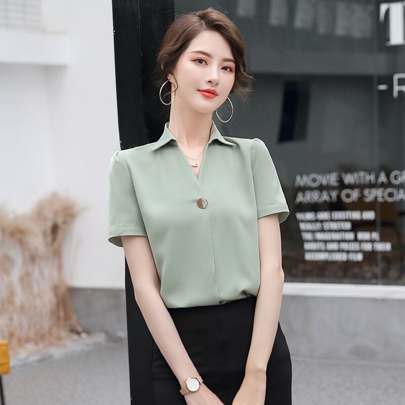 【新作】【送料無料】 2020年春夏新作レディーススリムシフォン無地半袖シャツプロ気質スクエアネックプルオーバーレディースブラウス-アリババ スプリング 春物 サマー 夏物 ソリッドカラー スクウェア 12b391825946881