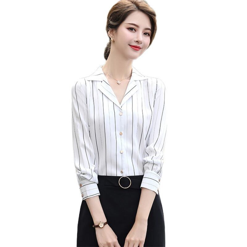 【新作】【送料無料】 白い縞模様のシャツ2020春と夏の新しい女性の気質は薄いプロの銀行のビジネス作業服です-アリババ ホワイト スプリング 春物 サマー 夏物 ストライプ 12b318915572511