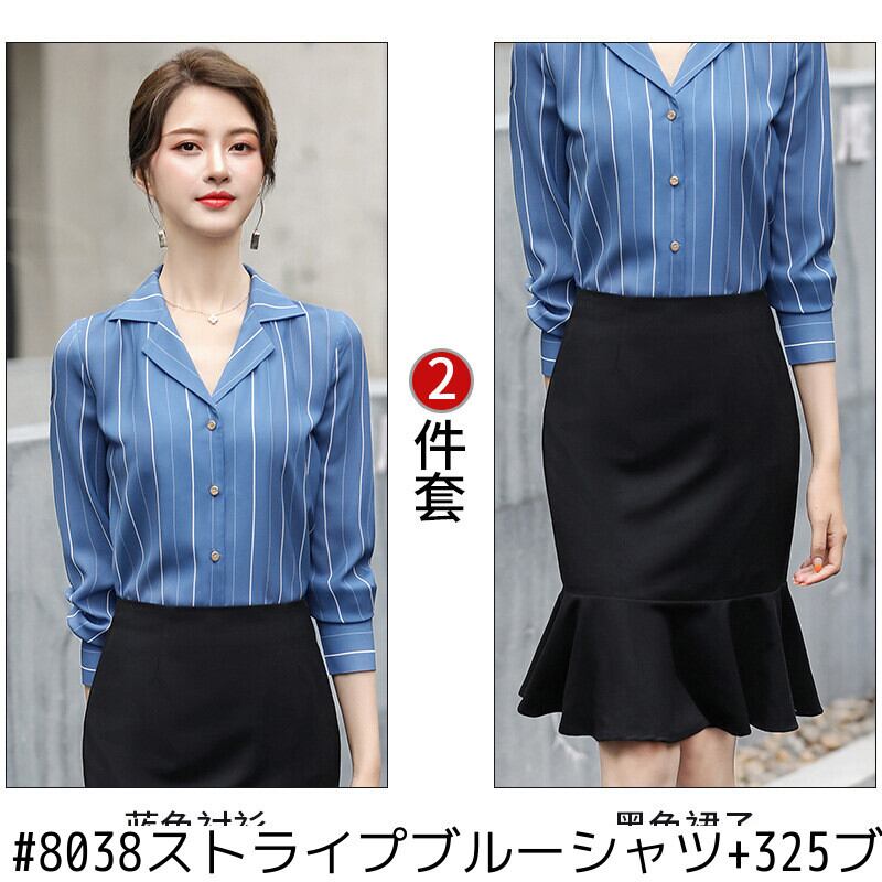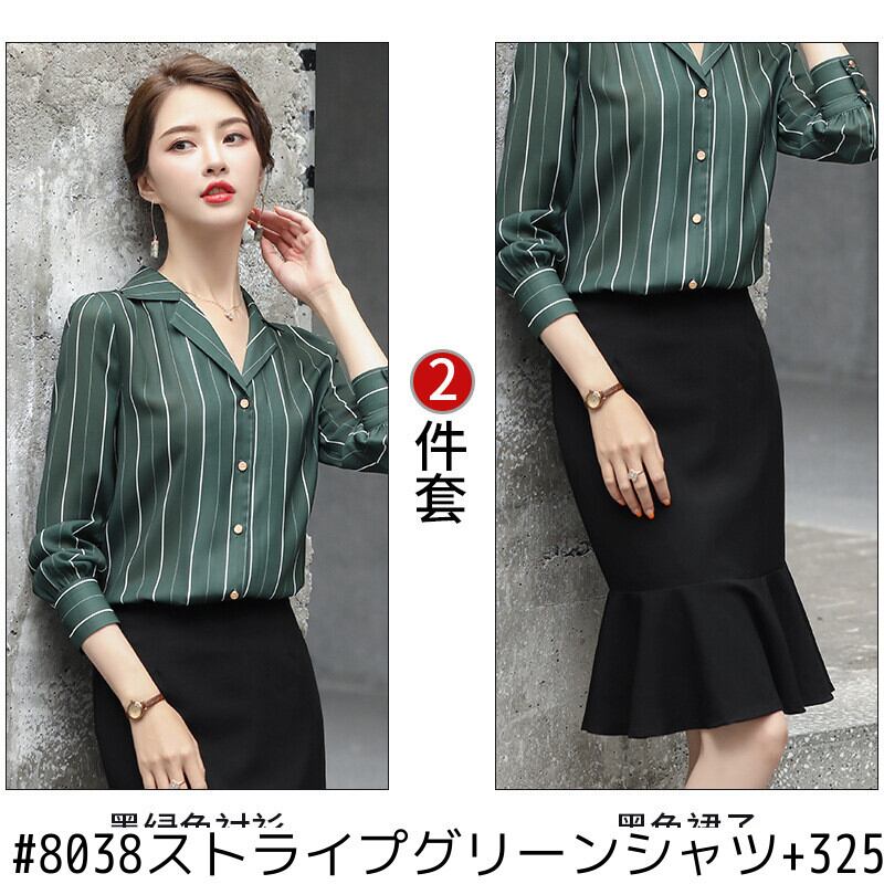 色:8038ストライプの白いシャツ+313の黒いスカート,8038ストライプブルーシャツ+325ブラックスカート,8038ストライプグリーンシャツ+325ブラックスカート,8038ストライプの白いシャツ,8038ストライプブルーシャツ,8038ストライプグリーンシャツ
