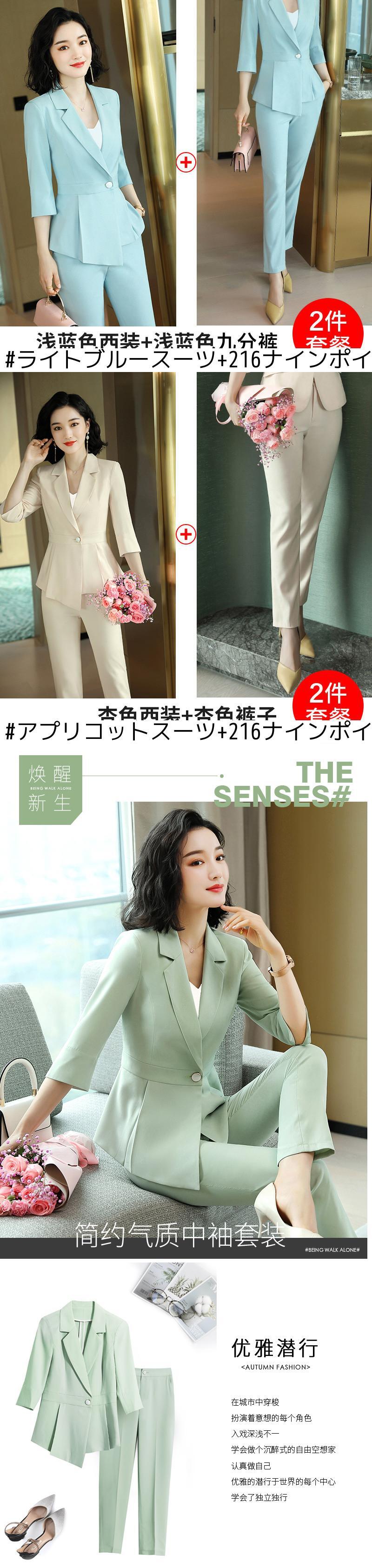 色:フルーツグリーンのシングルスーツ,ライトブルーのシングルスーツ,ベージュのシングルスーツ,フルーツグリーンスーツ+216ナインパンツ,ライトブルースーツ+216ナインポイントパンツ,アプリコットスーツ+216ナインポイントパンツ