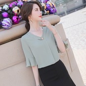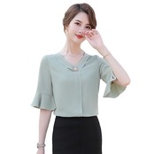 【新作】【送料無料】 2020年春夏新作レディースホーンミッドスリーブルーズエレガントビジネスコミューターシャツシフォンプルオーバースリムトップ-Alibaba スプリング 春物 サマー 夏物 12b389220971809