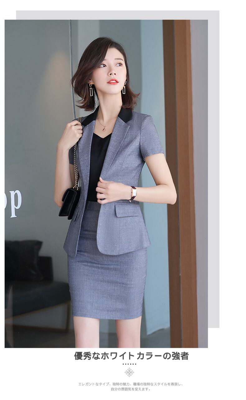 【新作】【送料無料】 ビューティーサロンインタビューフロントデスク作業服通勤半袖スーツジャケットハーフレングススカートツーピースドレス女性-アリババ ショート ハーフスリーブ 12b344908152772