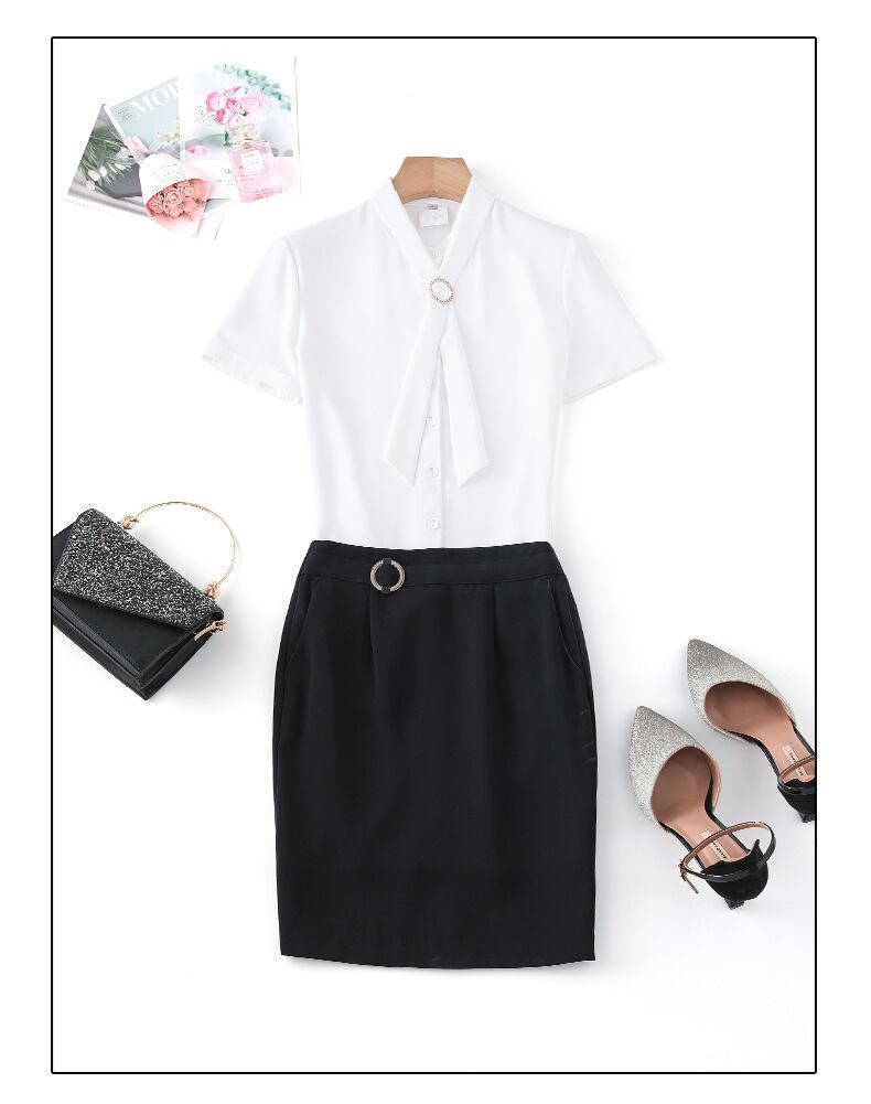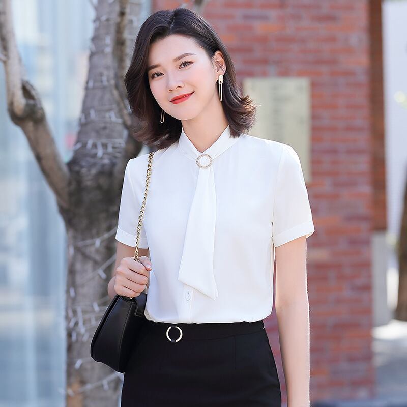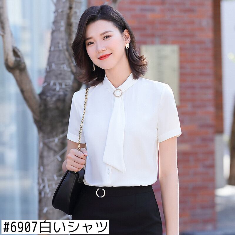 【新作】【送料無料】 2020年夏の新しい女性の半袖気質ビジネスフロントデスクエル作業服デザインニッチシャツトップ-アリババ サマー 夏物 12b382385649156