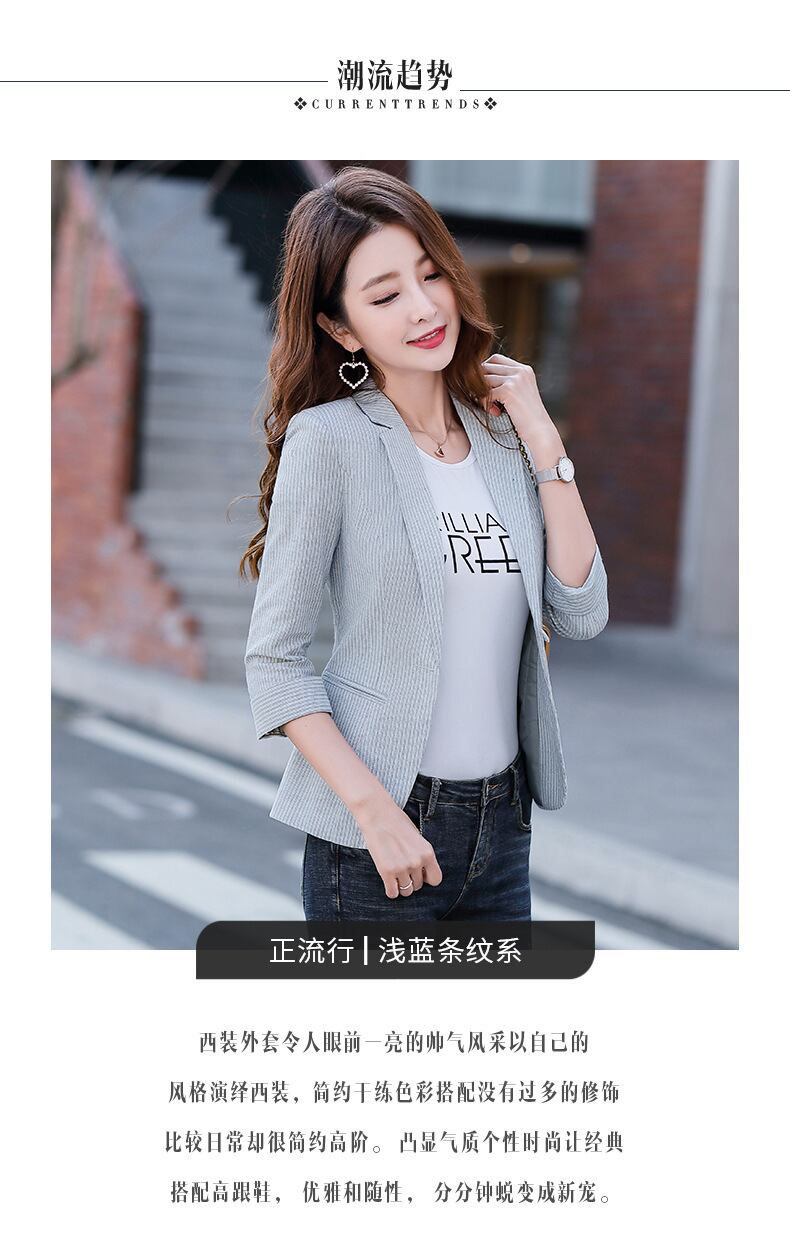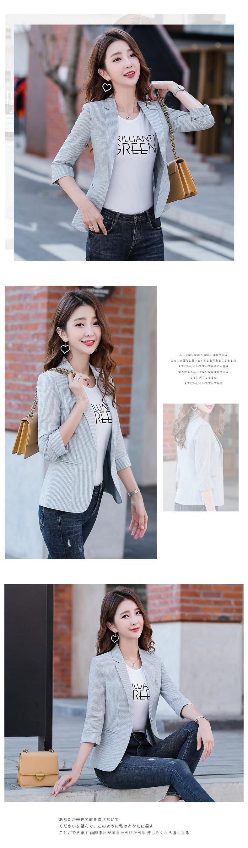 【新作】【送料無料】 ストライプの七分袖Xiaoxiangfenスーツ2020夏の新しい女性の洋風スリムレトロシンプルスーツジャケット-アリババ サマー 夏物 12b34601143339
