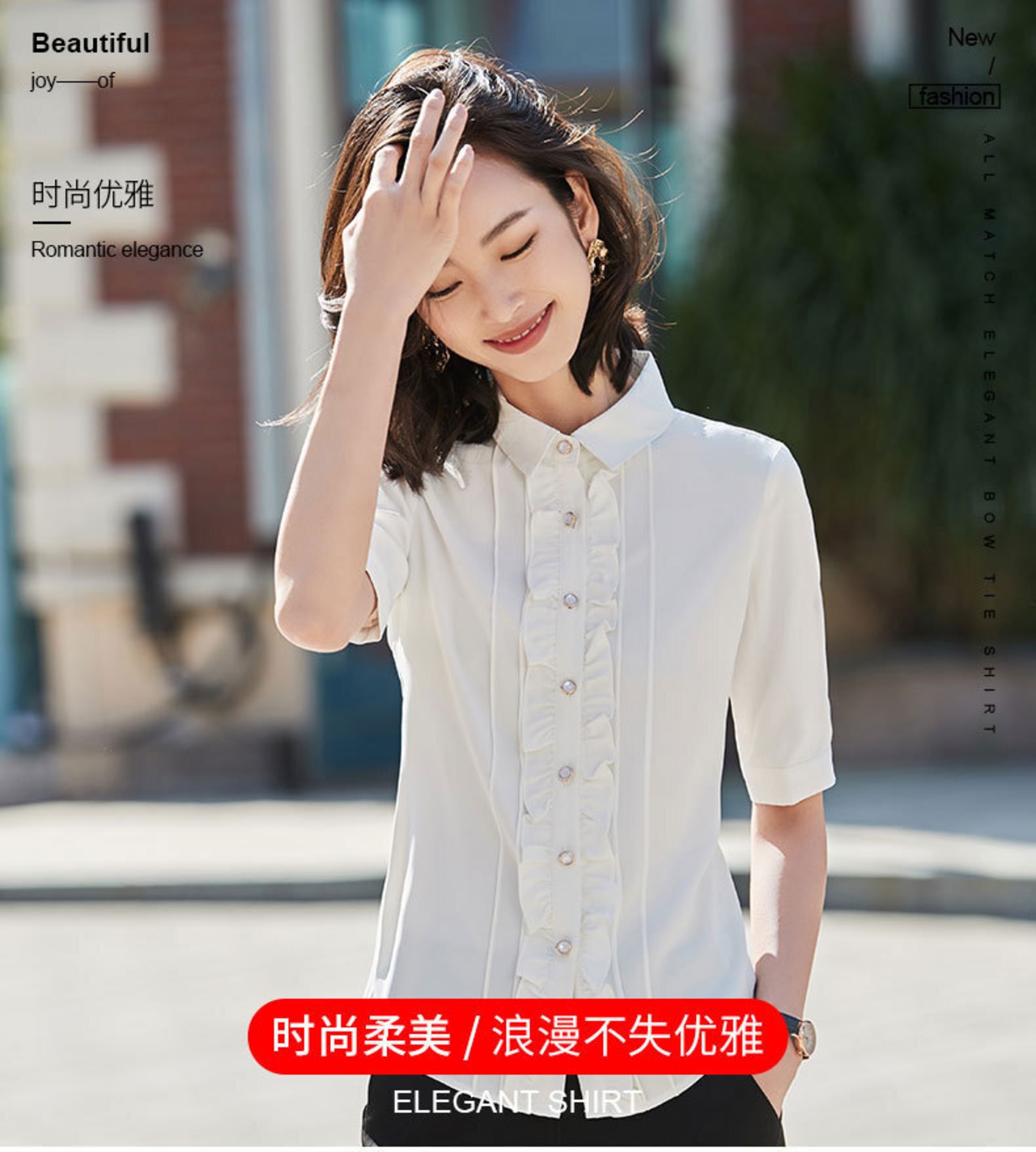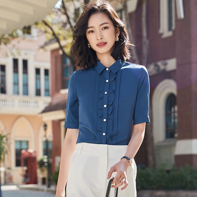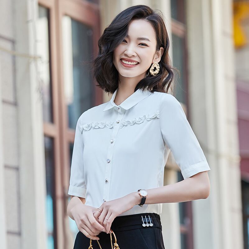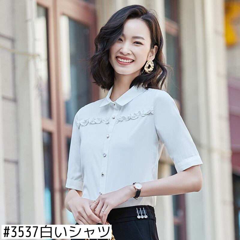 【新作】【送料無料】 ファンガスレースミドルスリーブエレガントシャツ2020夏の新しい女性のシングルブレストビジネスコミューターOLプロフェッショナルトップ-アリババ サマー 夏物 12b353442966846