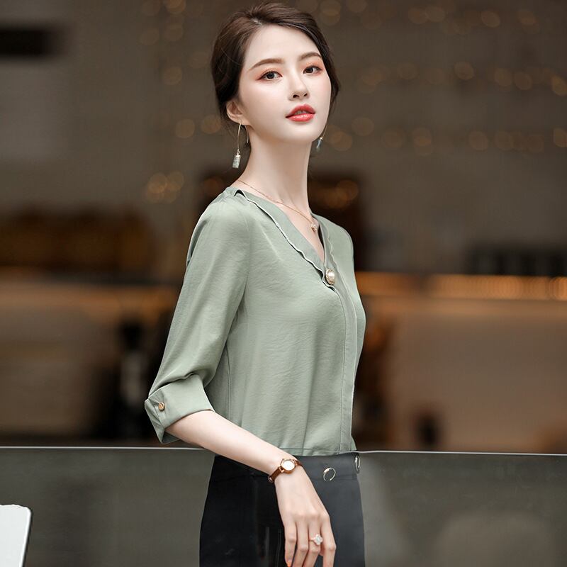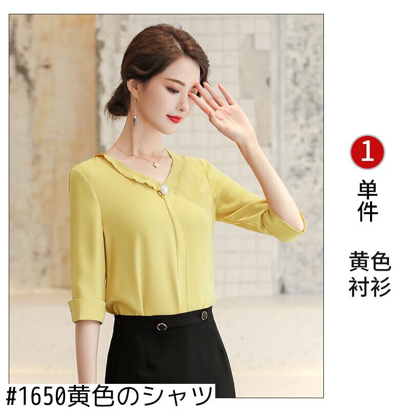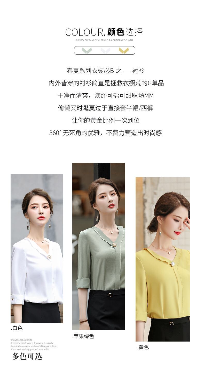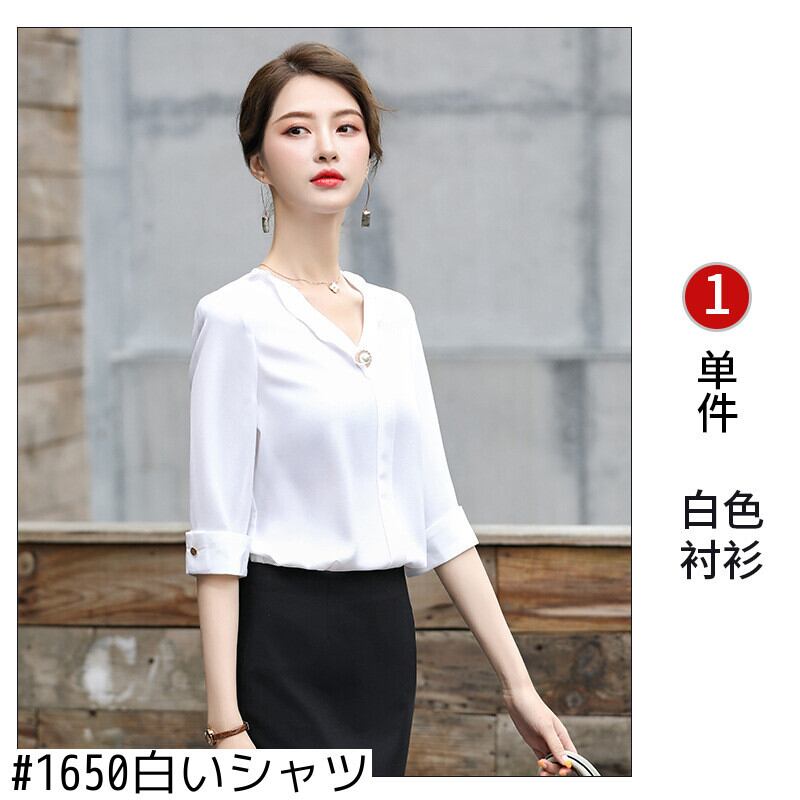 【新作】【送料無料】 2020年春夏の新しい女性用ホワイト5点スリーブ、ウエスタンスタイル、ビジネスキャリアのエレガントでシンプルなシャツトップ-Alibaba スプリング 春物 サマー 夏物 12b380938513178