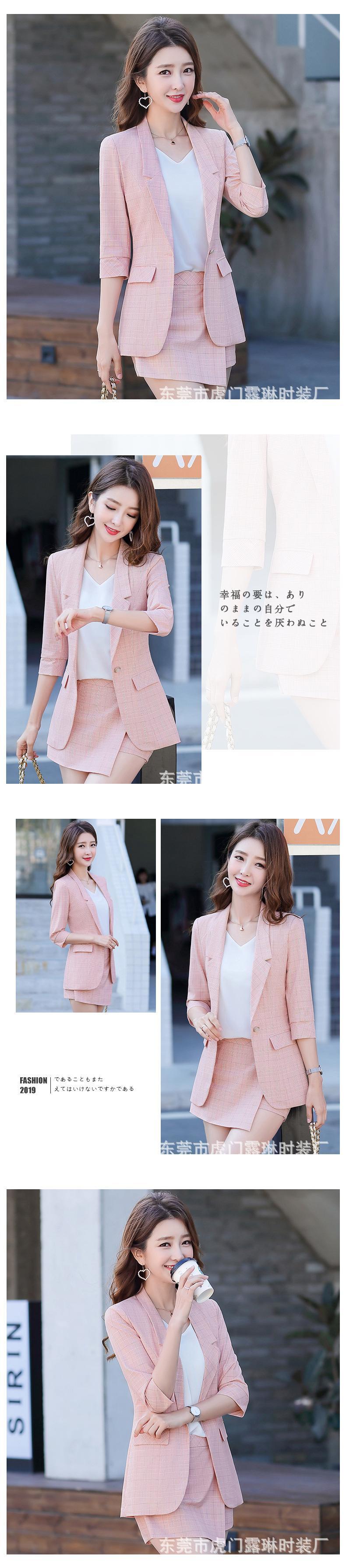 【新作】【送料無料】 ピンクの格子縞の年齢を減らす気質の小さなスーツ2020夏の女性の女神ファン7ポイントスリーブスーツトップ-アリババ サマー 夏物 12b392806963839