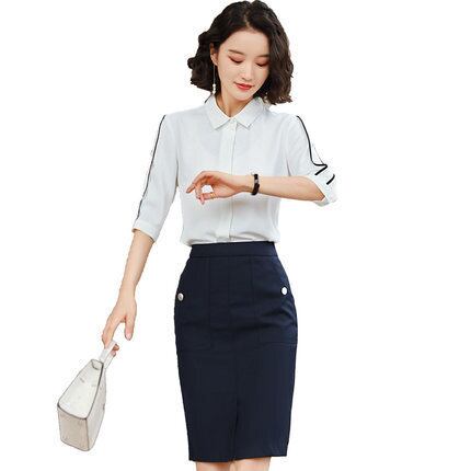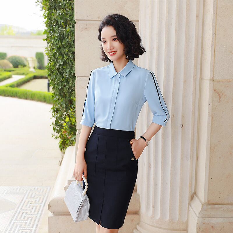 【新作】【送料無料】 2020年夏の新しい女性のプロの服5点スリーブシャツビジネスフロントデスク作業服通勤スリムトップ-アリババ サマー 夏物 12b333210419755