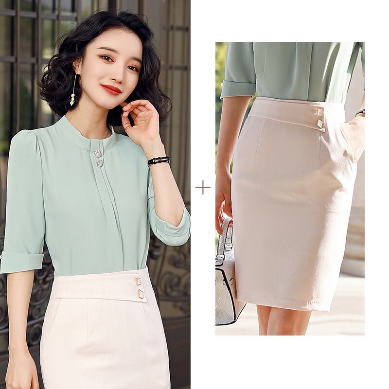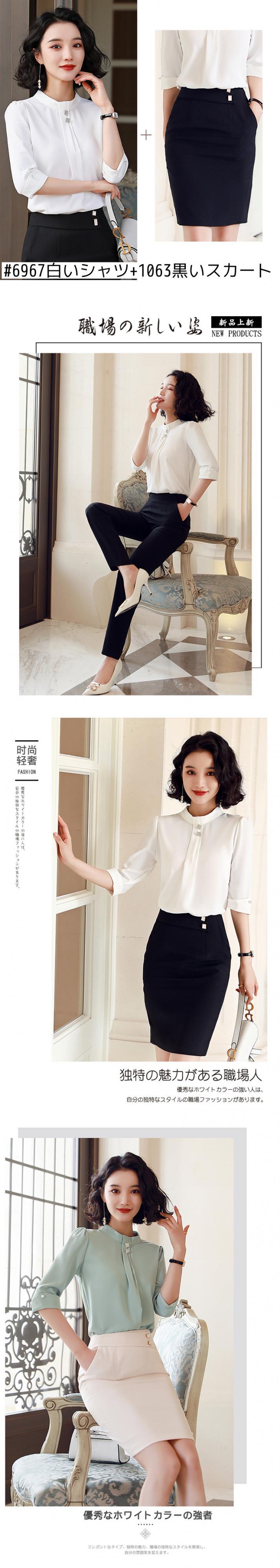 色:6967白いシャツ,6967グリーンシャツ,8063黒パンツ,1063オフホワイトのスカート,1063ブラックスカート,6967白いシャツ+8063黒いズボン,6967緑のシャツ+1063mの白いスカート,6967白いシャツ+1063黒いスカート