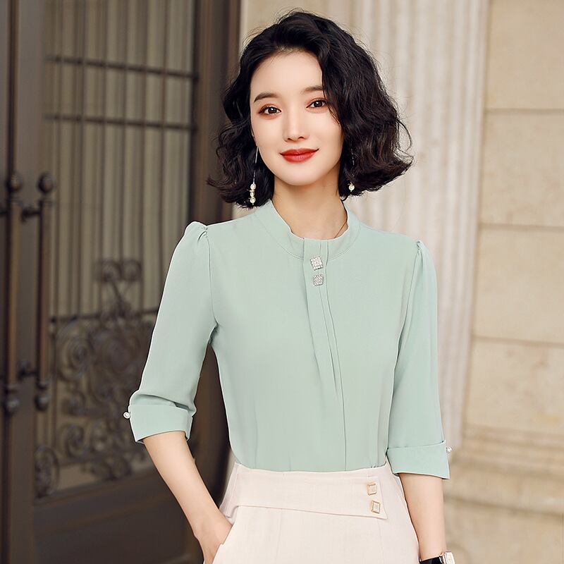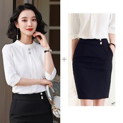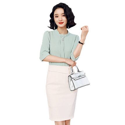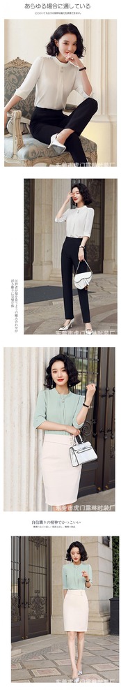 【新作】【送料無料】 プロのシャツセットロングパンツレディースミドルスリーブホワイトマルサマートップスオールマッチシャツジュエリーショップ作業服-アリババ 夏物 12b381450418496