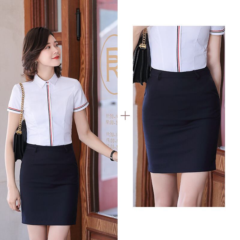 【新作】【送料無料】 銀行のフロントデスクエルシャツスカートスーツ女性2020夏の新しいプロのビジネスインタビューツーピーススーツ-アリババ サマー 夏物 12b336263289328