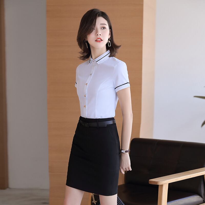 【新作】【送料無料】 ホワイト半袖プロスリムフィットシャツ2020夏新作女性通勤ホワイトカラーレセプションエルシャツ-アリババ サマー 夏物 12b362839612915