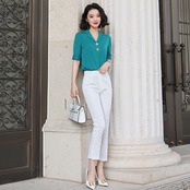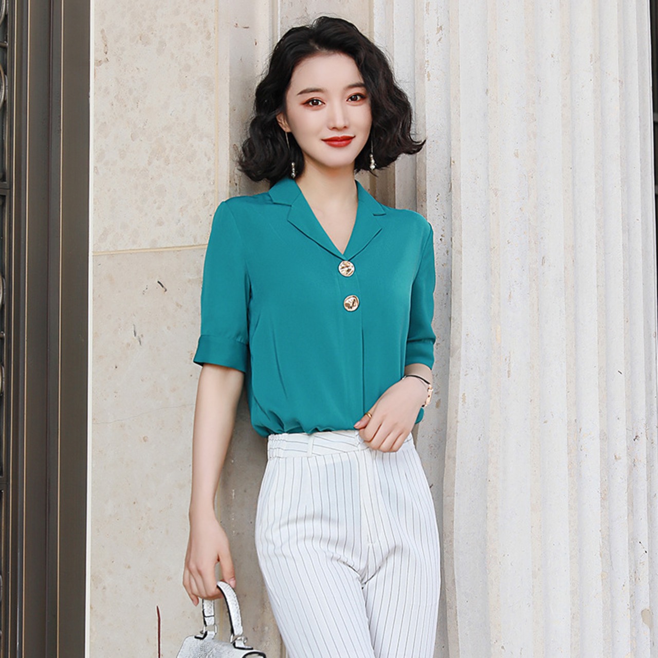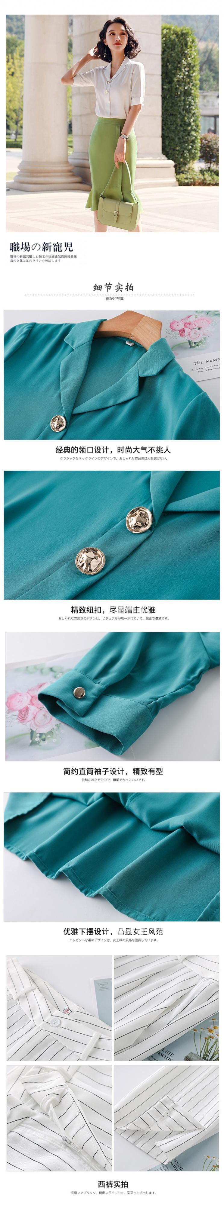 【新作】【送料無料】 2020年夏の新しいエレガントな通勤シンプルなプロのフィッシュテールスカートブルースリーブシャツパンツツーピーススーツ女性-アリババ サマー 夏物 12b314923222580