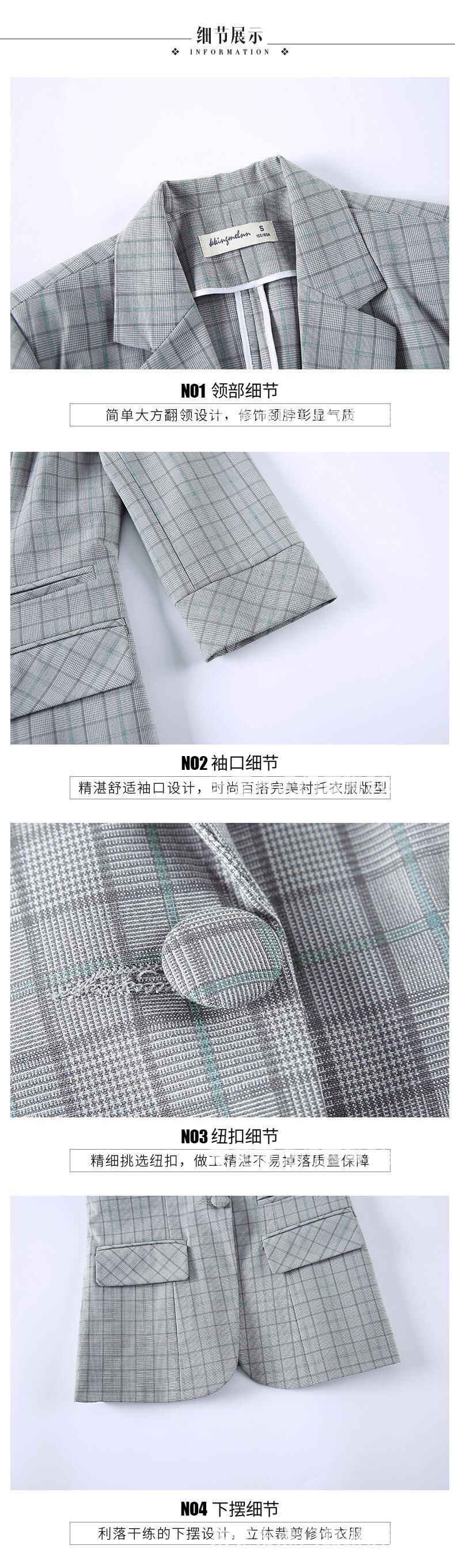 【新作】【送料無料】 七分袖チェック柄ウエスタンスタイルスモールスーツ2020夏の新しい婦人服は薄く見えるプロのミッドスリーブスーツジャケット-アリババ サマー 夏物 12b364766354680